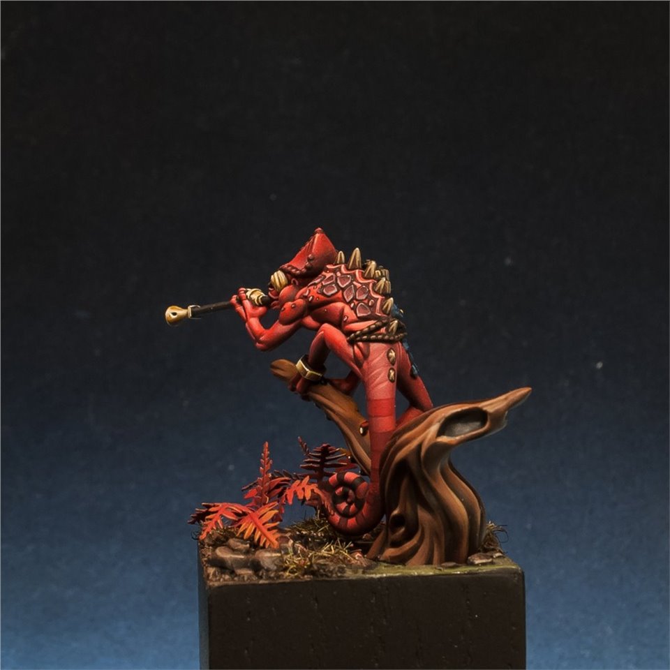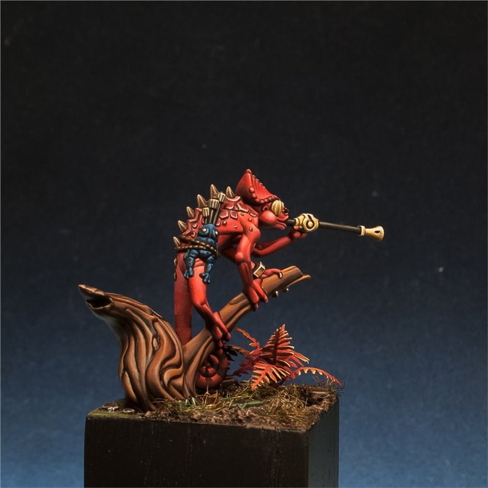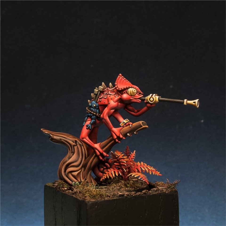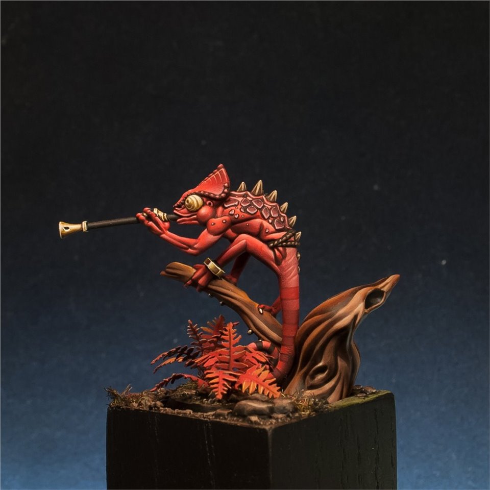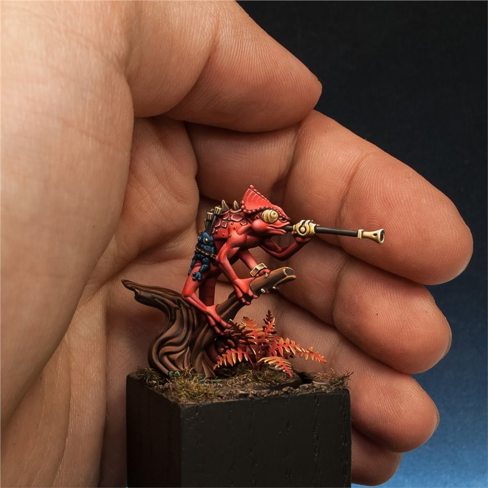 Otapatl the Chameleon Skink из настольной игры Warhammer Underworlds, набор The Starblood Stalkers. Покрасил с большим удовольствием, очень приятная в росписи фигура, цветовую схему попросили сделать нестандартной, потому остановился на красных оттенках. За