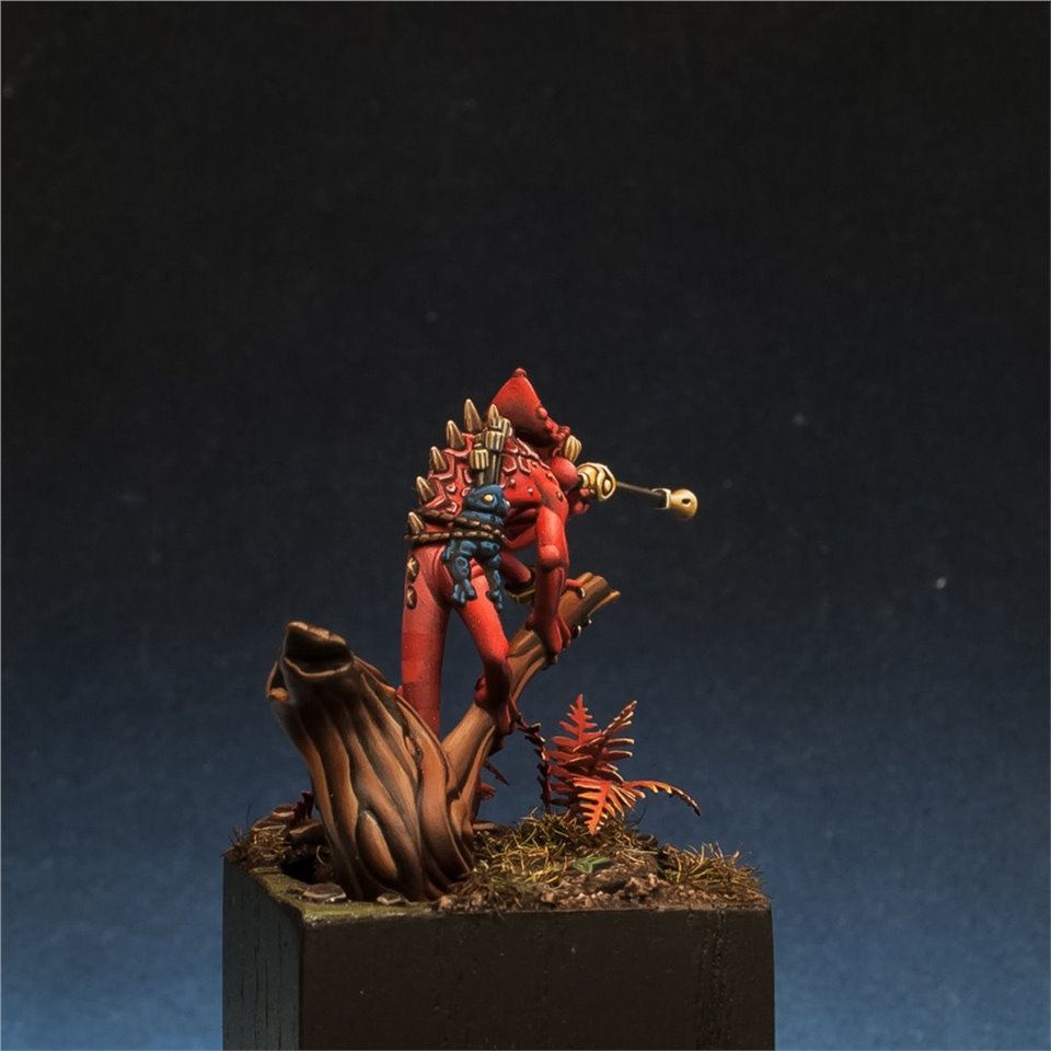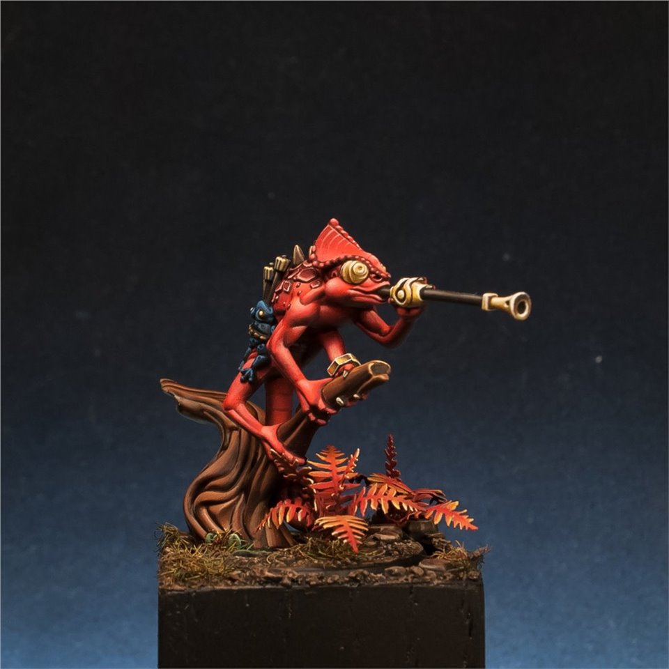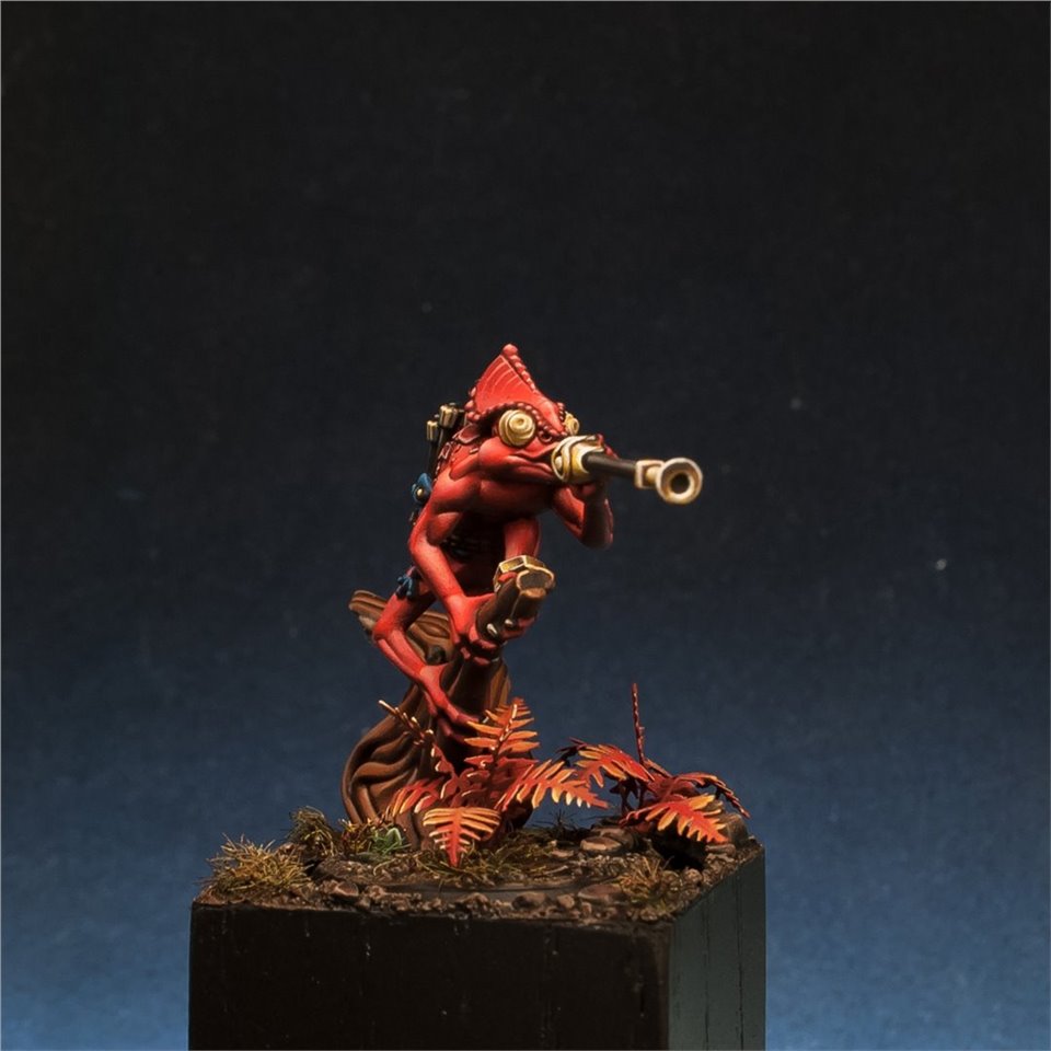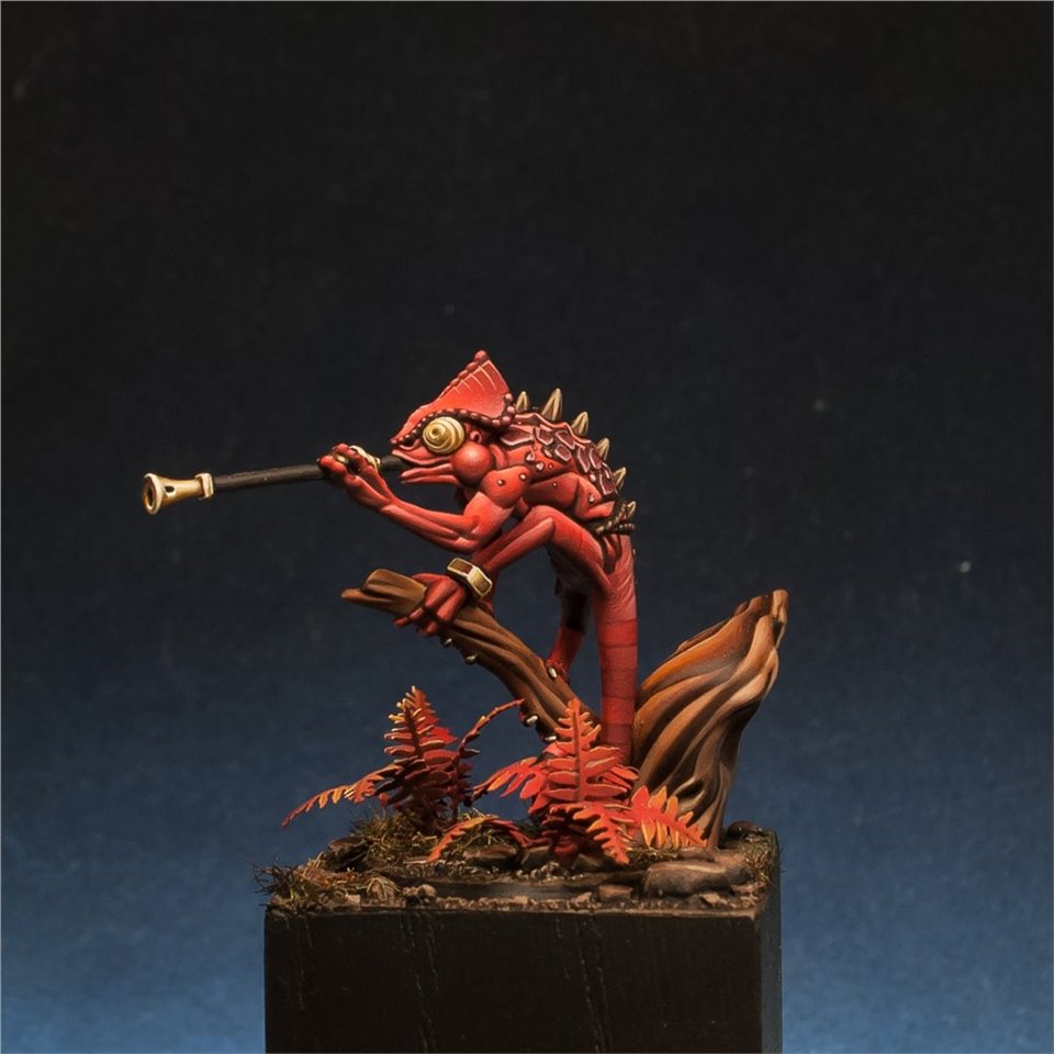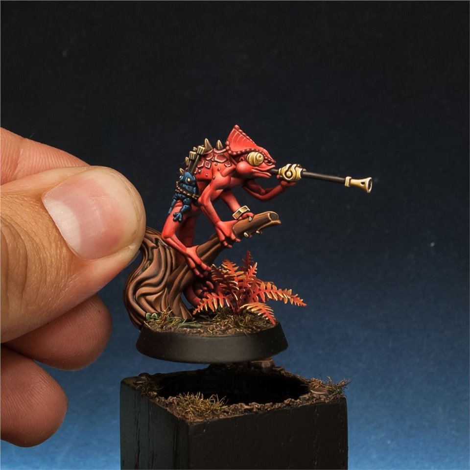 Otapatl the Chameleon Skink из настольной игры Warhammer Underworlds, набор The Starblood Stalkers. Покрасил с большим удовольствием, очень приятная в росписи фигура, цветовую схему попросили сделать нестандартной, потому остановился на красных оттенках. За