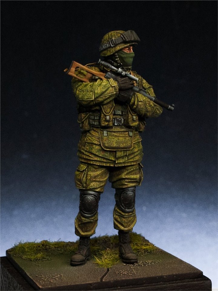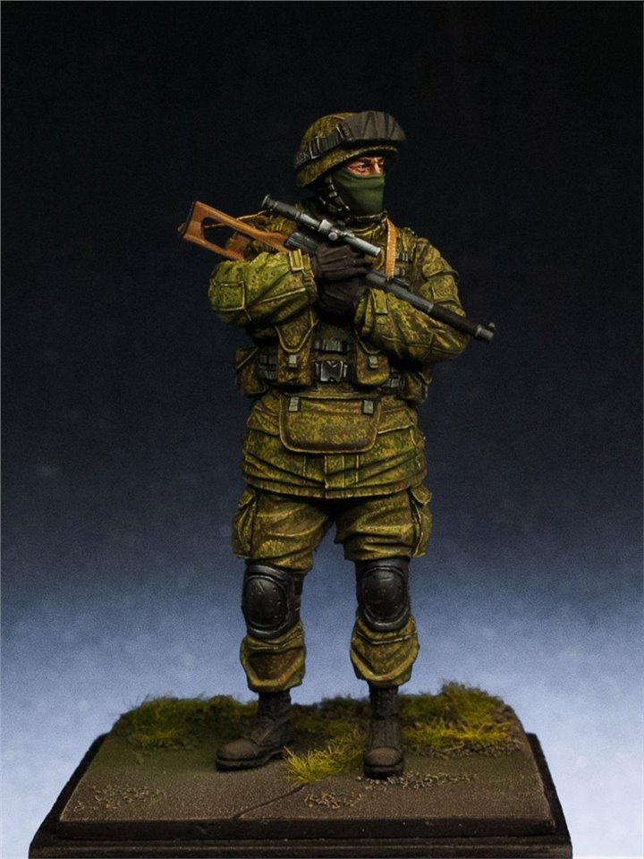 Утро доброе, страна! Буквально час назад переборол свою лень и сделал фотографии новой фигуры, которую завершил чуть больше недели назад. Modern Russian soldiers, 2014. Evolution Miniatures (EM-35098), 1/35, resin.
