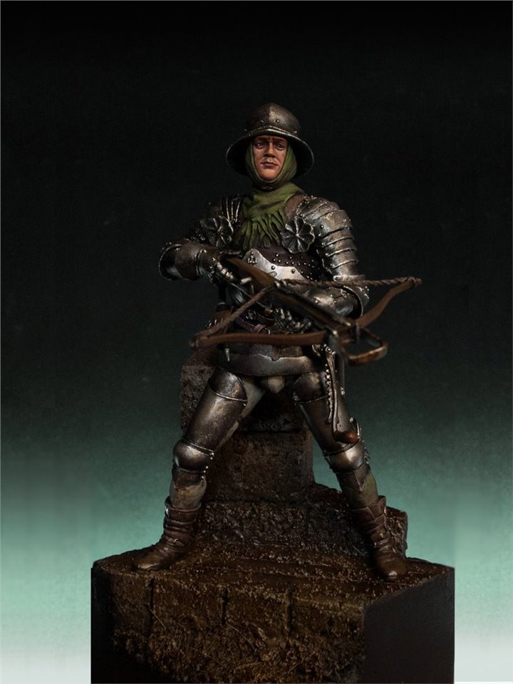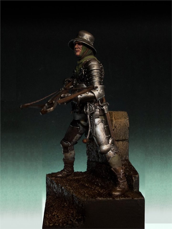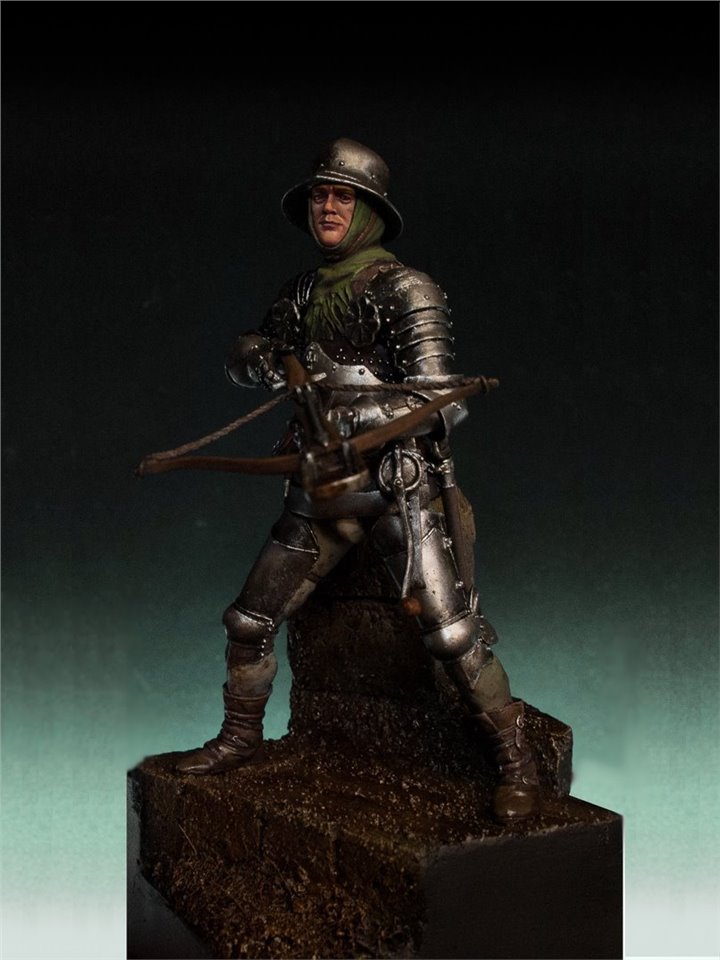 Как я уже упоминал в предыдущей публикации, помимо сурового бургундца, я сделал ещё одну фигуру на мрачную эпоху средневековья:) Встречаем противника нашему рыцарю - швейцарский арбалетчик XV век:) Производитель Mercury Models, 75mm, смола. Скульптор - Талант Сооданбеков