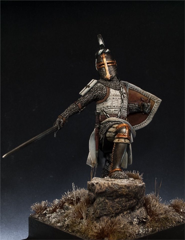 Вчера свою вторую годовщину отметили мои друзья - ALTORES STUDIO, за несколько лет проект набрал большую популярность как в России, так и за её пределами:) А сегодня я рад поздравить Александра Пашина с Днём Рождения, всех тебе благ и успехов в развитии проекта, радуй нас и дальше замечательными фигурами!:) В честь этих событий публикую боксарт замечательной скульптуры Олега Погосяна - Europian Knight XIV century. В моём исполнении получился тевтонец со всеми присущими ему цветовыми знаками отличия:)
