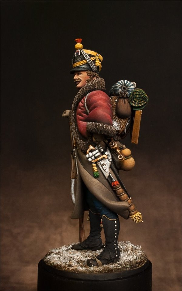 Весна в разгаре, на улице уже тепло, хочется наслаждаться замечательными майскими деньками, тем не менее это не повод отложить кисти и краски в сторону! Самое время оживлять замечательные фигуры, которых, стараниями наших замечательных производителей, становится всё больше и больше:) Одна из таких миниатюр - французский вольтижер, отступленец из Москвы 1812 года от FIRST LEGION Miniatures.