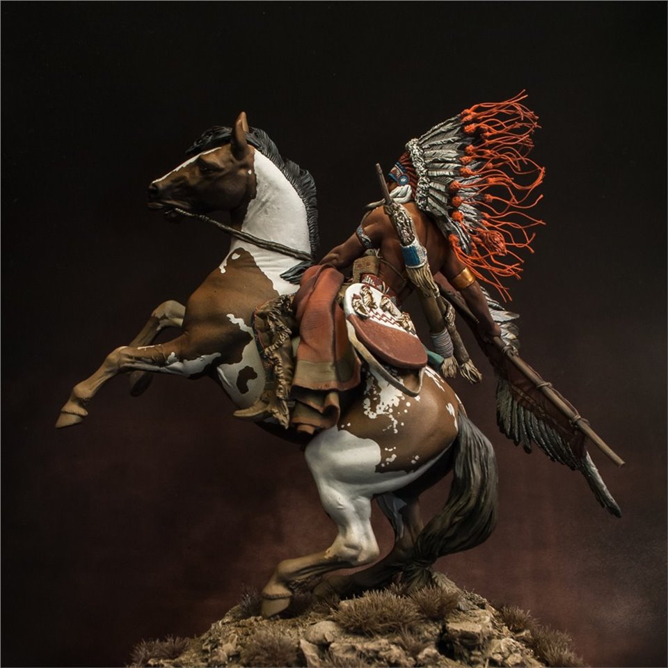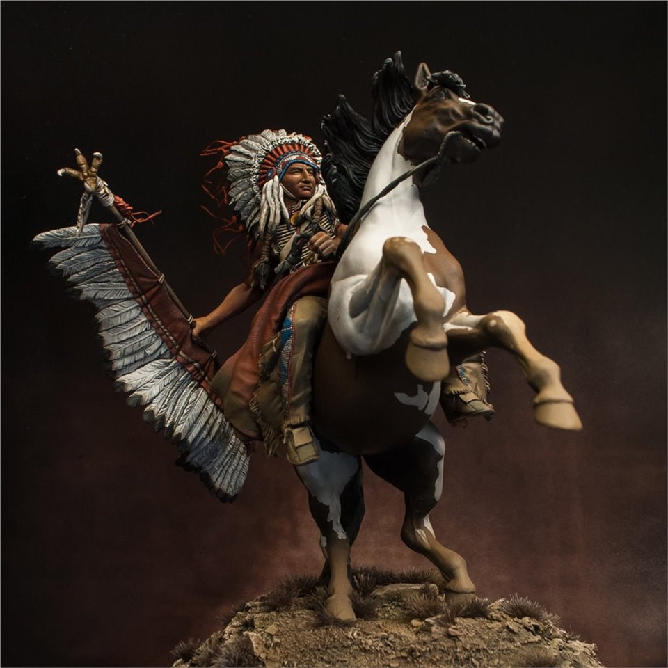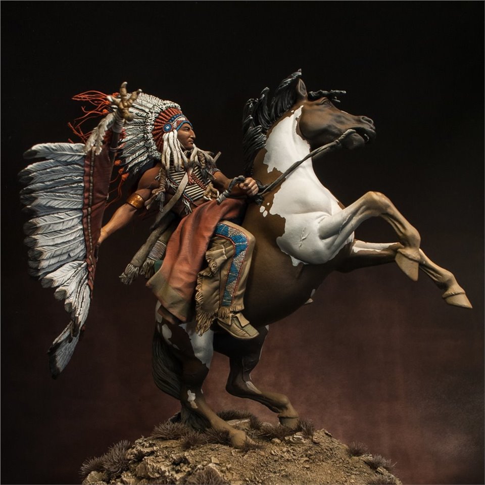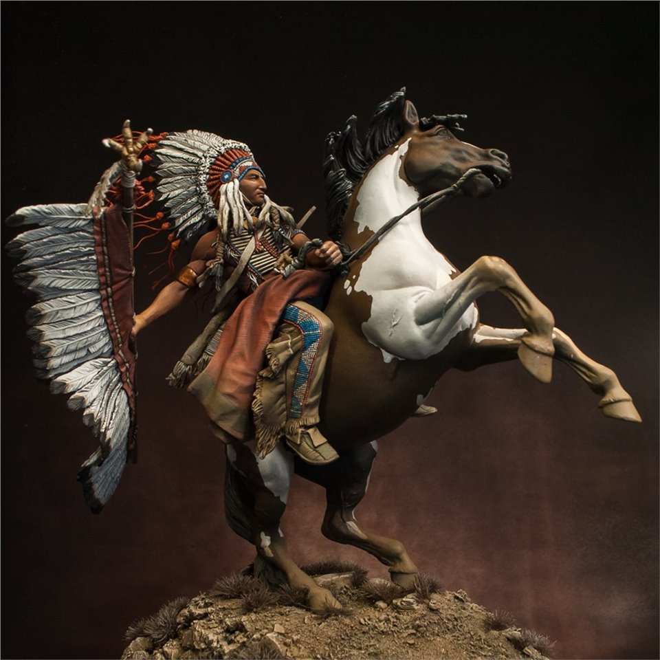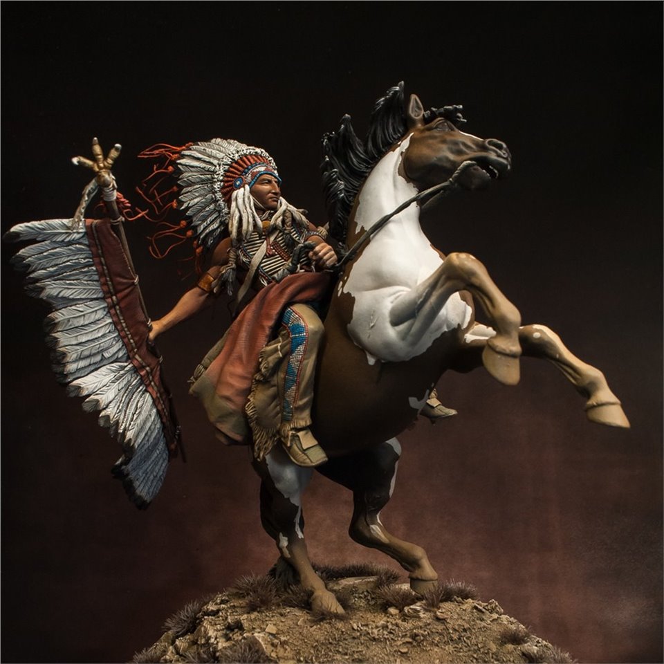Что же, пора выходить из моего импровизированного творческого отпуска:) В честь этого можно выложить что-то подобное - крупное, монументальное и тяжелое (во всех смыслах). Встречайте - вождь племени Лакота, от итальянской Pegaso Models, 90mm. На данный момент