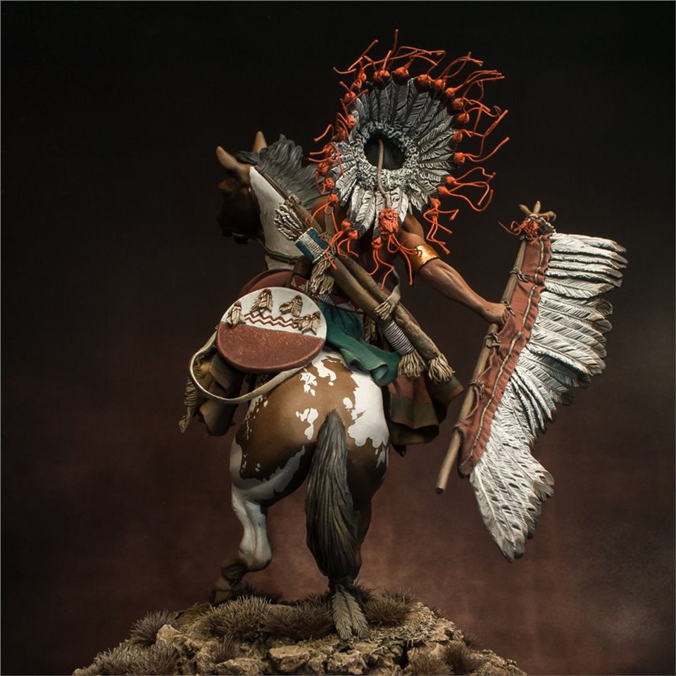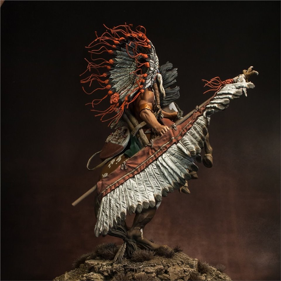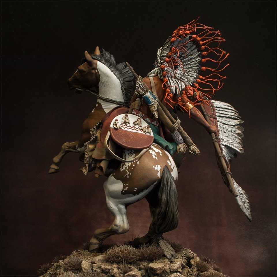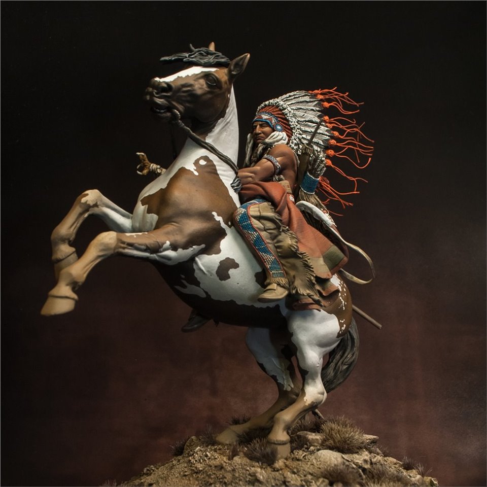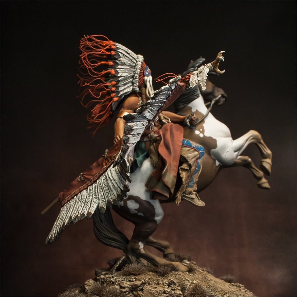 Что же, пора выходить из моего импровизированного творческого отпуска:) В честь этого можно выложить что-то подобное - крупное, монументальное и тяжелое (во всех смыслах). Встречайте - вождь племени Лакота, от итальянской Pegaso Models, 90mm. На данный момент