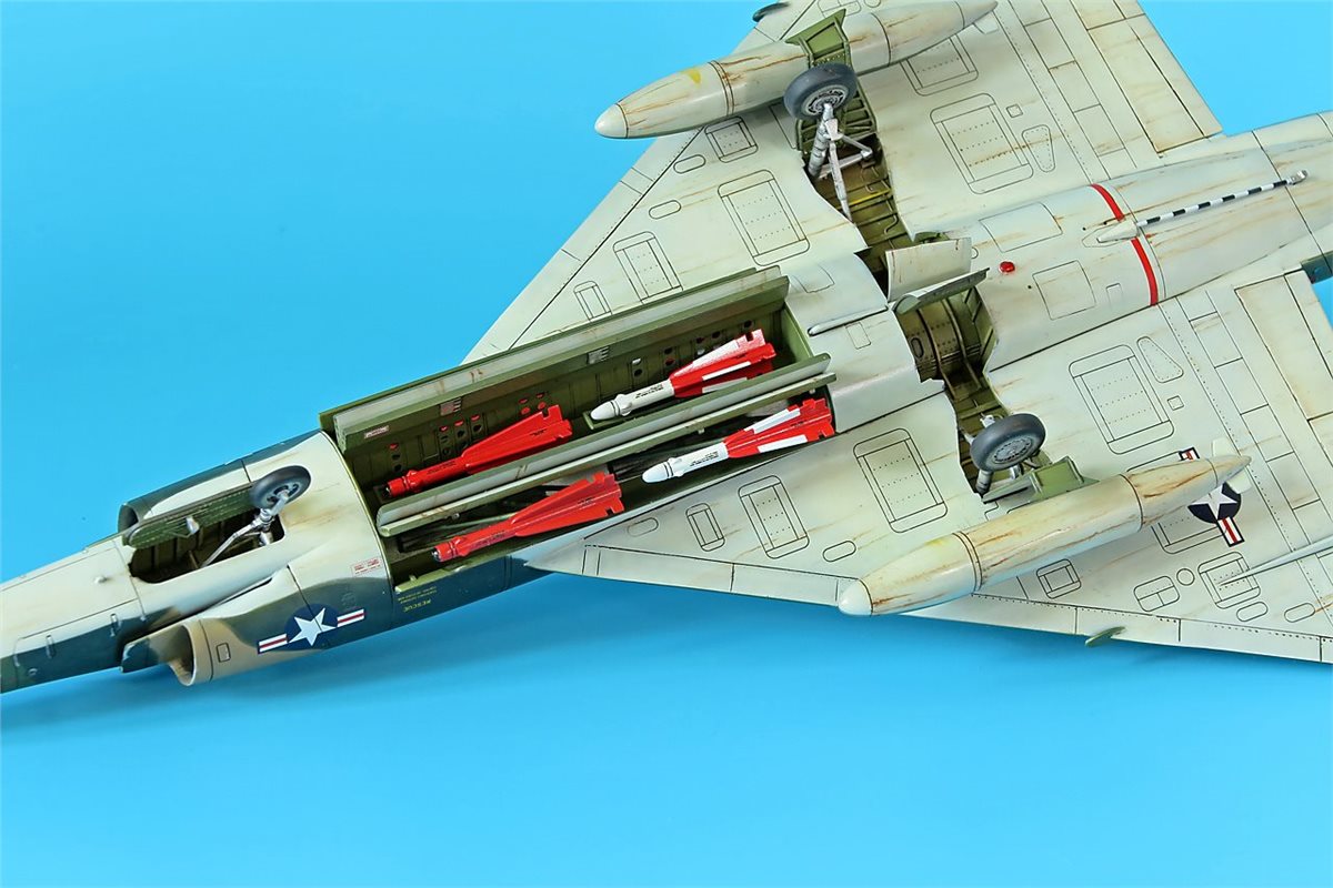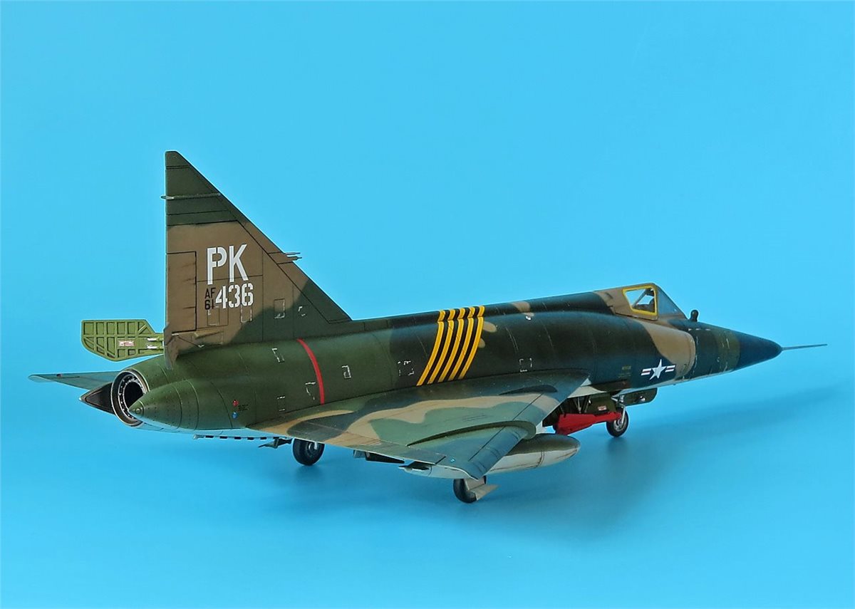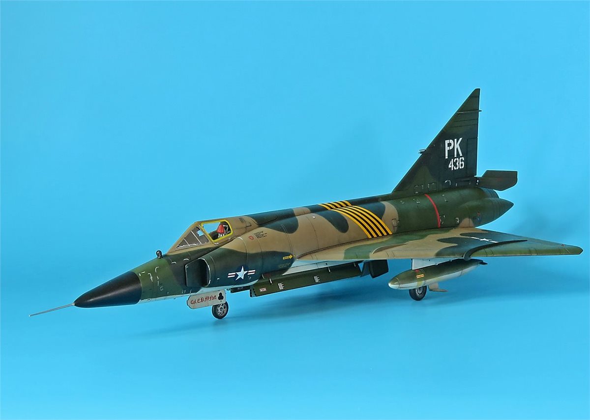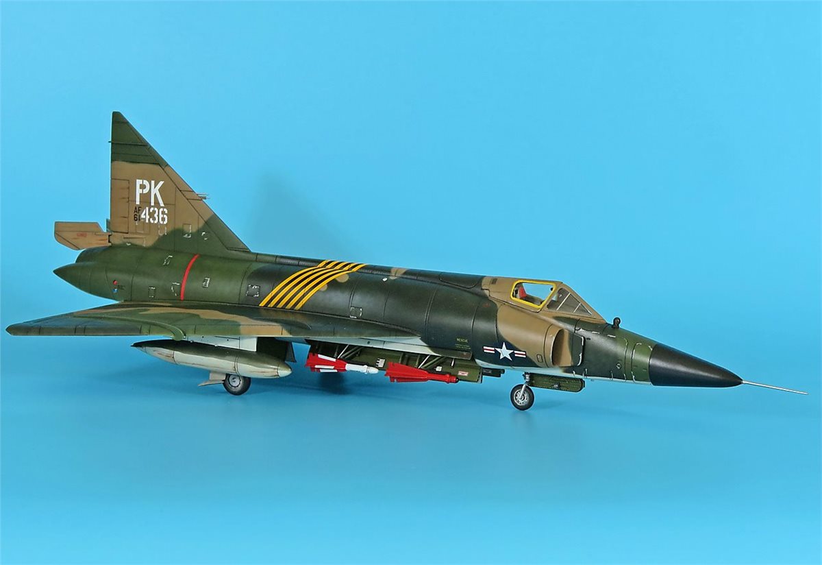 Дельта Даггер от фирмы Meng. Не скажу, что являюсь большим фанатом "сотой серии", но отдаю должное, что самолеты были очень интересные! В очередной раз перебирия свои запасы и рассматривая литники выбрал эту модель. Как мне показалось она будет не слишком сложной в сборке (в общем-то оно так и оказалось). Далее надо было выбрать прототип, решил остановиться на камуфляжном варианте, более редким для этого типа самолетов. Поэтому прототипом послужил самолет из состава 509 эскадрильи перехватчиков, база Udorn, Таиланд 1969 год. Сборка действительно не доставила особых проблем, отсек вооружения решил делать открытым, т.к. на мой взгляд это важная отличительная черта этого самолета. Кое-что по мелочи доработал, но это скорей косметика. Когда была собрана "тушка" был поражен размером, особенно с учетом того, что самолет однодвигательный!