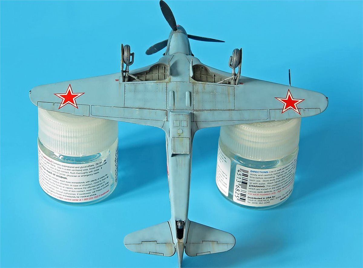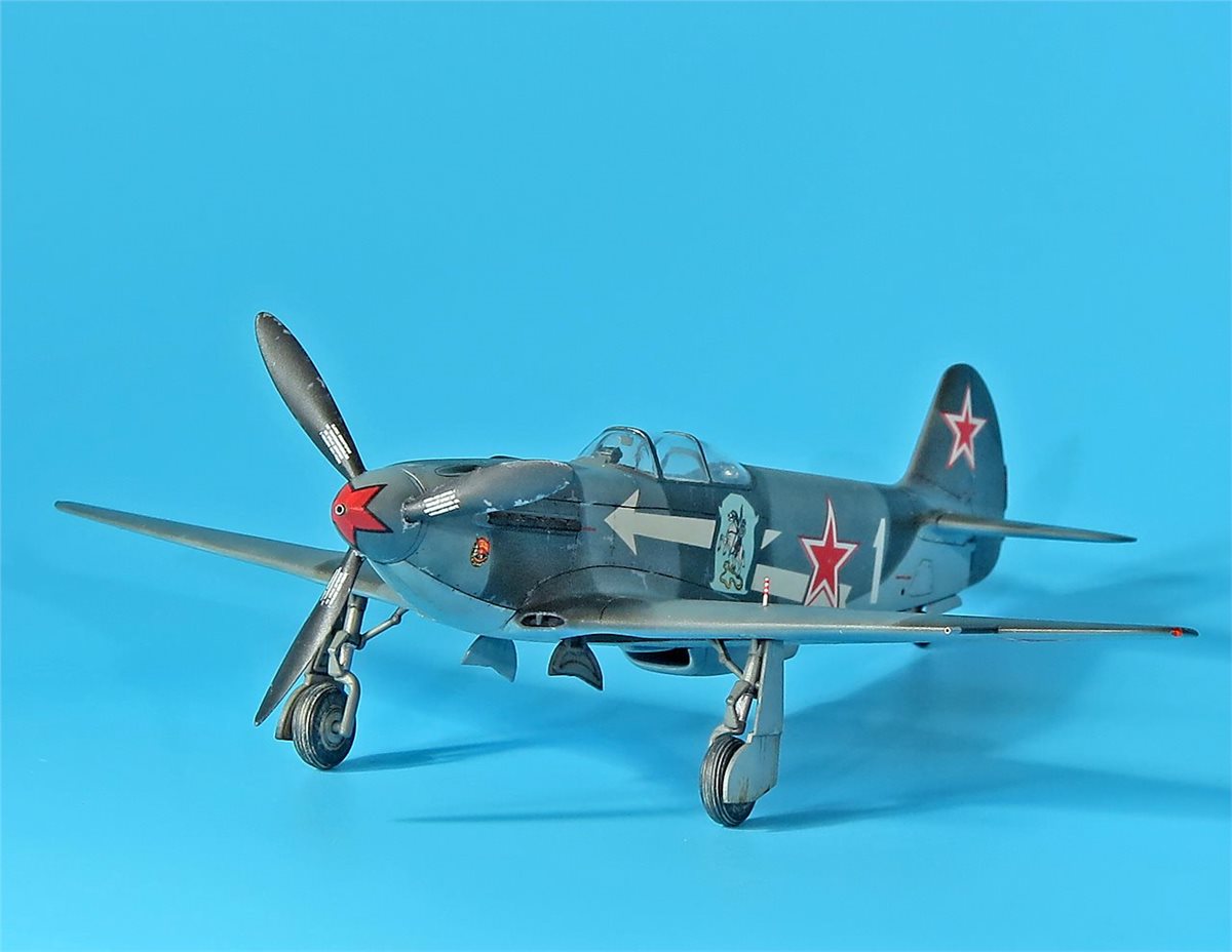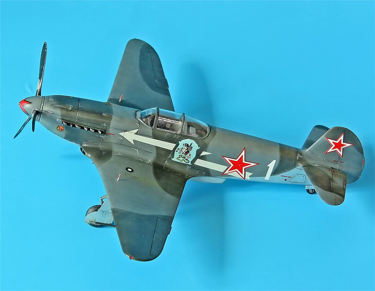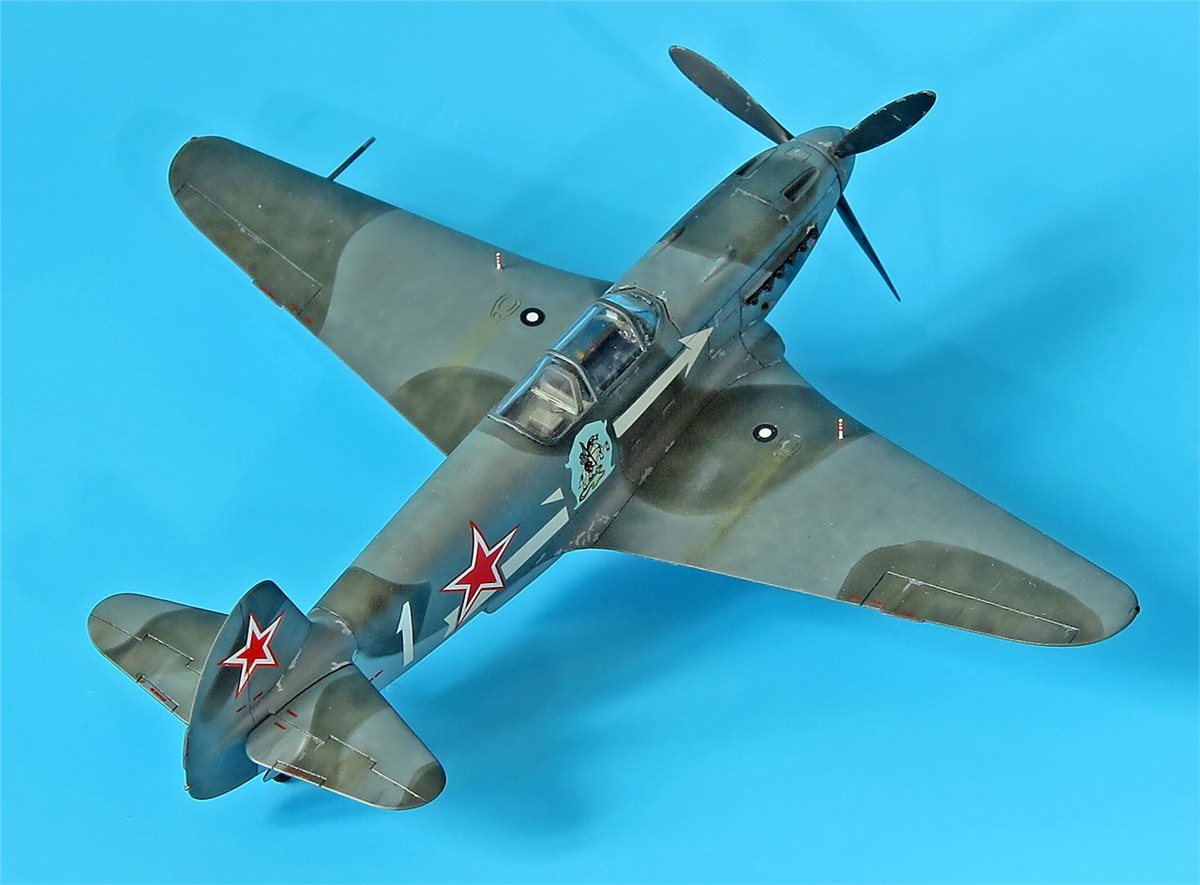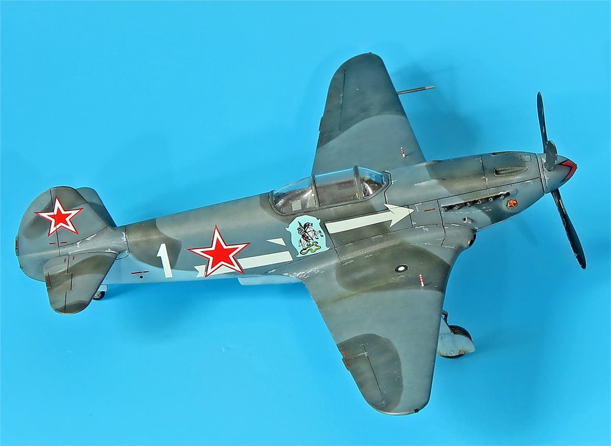 Всем известная модель от "Звезды". Коробочные борта мне показались через чур заезженными, поэтому решил взять декали из набора ЯК-3 от Hasegawa (частично, а частично оставил родные). Кок и винт - набор Prop&Jet, колеса "Экипаж". В качествпе прототипа была выбрана машина генерала-майора Георгия Захарова (303-я истребительная авиационная Смоленская Краснознамённая ордена Суворова дивизия).