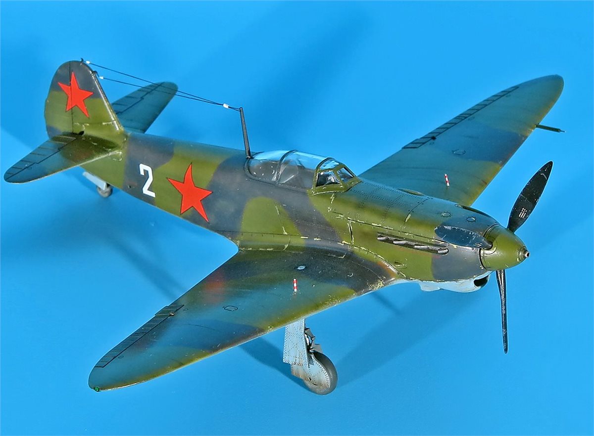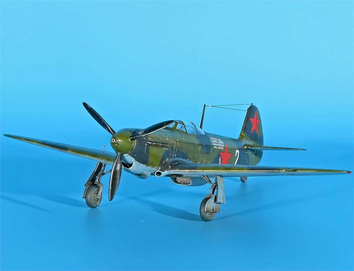 Модель истребителя ЯК-1Б от ArmaHobby в 72 масштабе. Модель довольно приятная в сборке, на твердую 4! Красил аканом и RealColor. В качестве прототипа был выбран именной самолет – подарок "Сталинскому соколу Леониду Смирнову от трудящихся Фрунзенского района г.Саратова" (бортовой номер 2) 148ИАП. У прототипа довольно необычная история. Сам командир эскадрильи капитан Л.Д. Смирнов (7+4) не вернулся с задания на другом Як-1 из района Неберджаевская 6.5.43 г. А чуть позже, 11 мая 1943 г., старший лейтенант М.В. Шкомплектов совершил посадку на аэродром Анапа занятый словаками. Словаки, базировавшиеся в Анапе, захватили, как они посчитали, перебежчика (в действительности Шкомплектова взяли в плен, летчик вернулся из него и прошел проверку без каких-либо последствий для себя). Самолет передали немецкой JG 52. После опробования 12 мая его перегнали в Тамань, а затем в Керчь. Эта машина также использовалась немцами в боях, так как по докладам советской стороны отмечалось применение противником самолета Як-1 со звездами и желтой надписью от кабины до хвоста. Захваченный истребитель впоследствии отправили в Германию, где его показали высшему командованию Люфтваффе на выставке трофеев 3 сентября 1943 г. в Рехлине. Затем машину выставили для всеобщего обозрения в г.Мекленбург (ныне г.Шверин). Дальнейшая судьба самолета неизвестна.