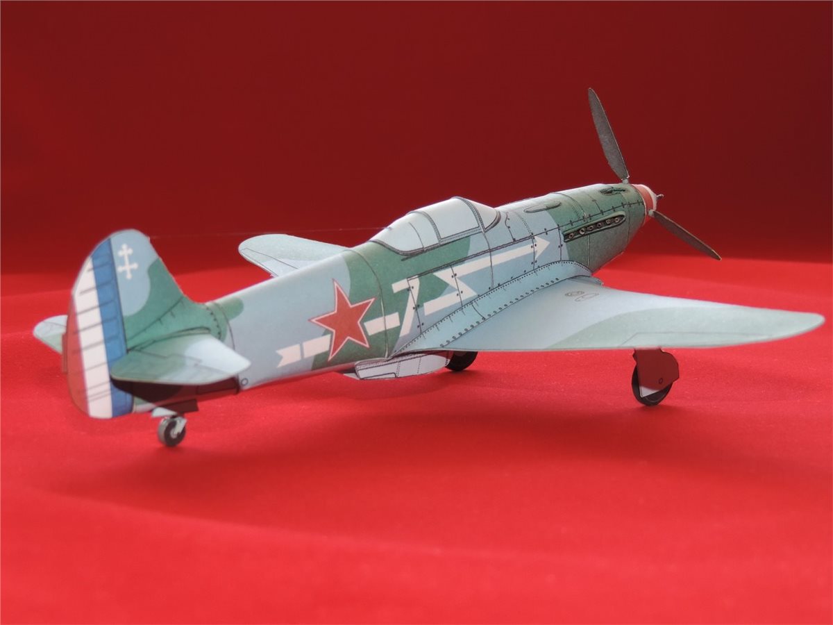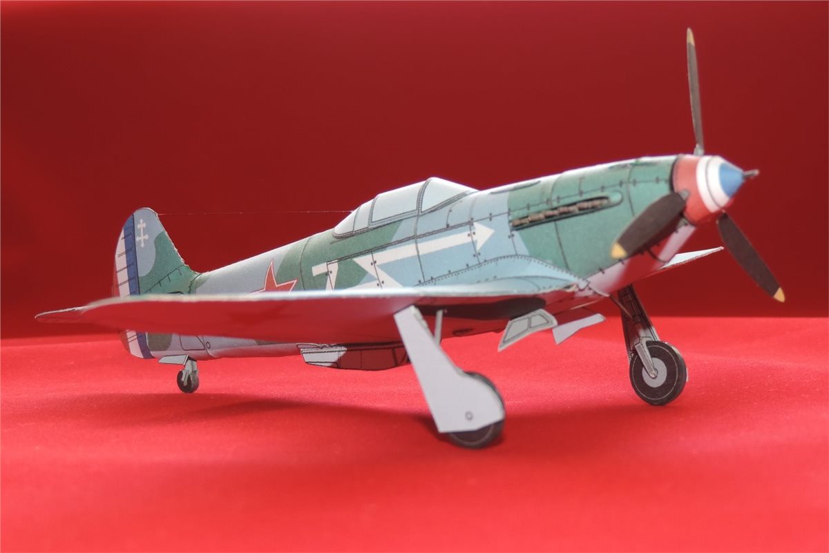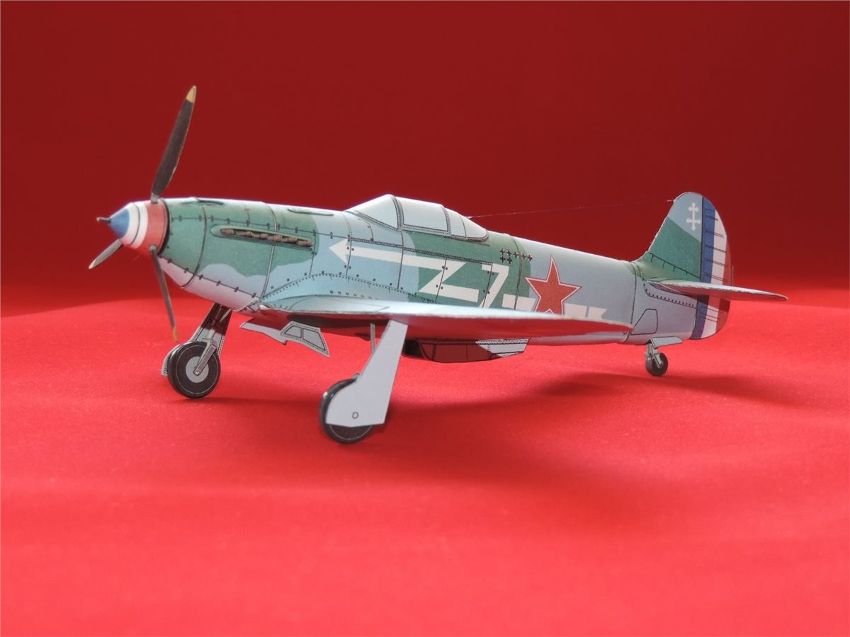 Бумажная модель в упрощённом варианте исполнения самолёта Як-3 принадлежавшего полку "Нормандия-Неман". Б/н "7", к сожалению не смог установить за кем записан. Сам прототип модели самолёта явился продолжением развития истребителей Як-1/1М и появился на