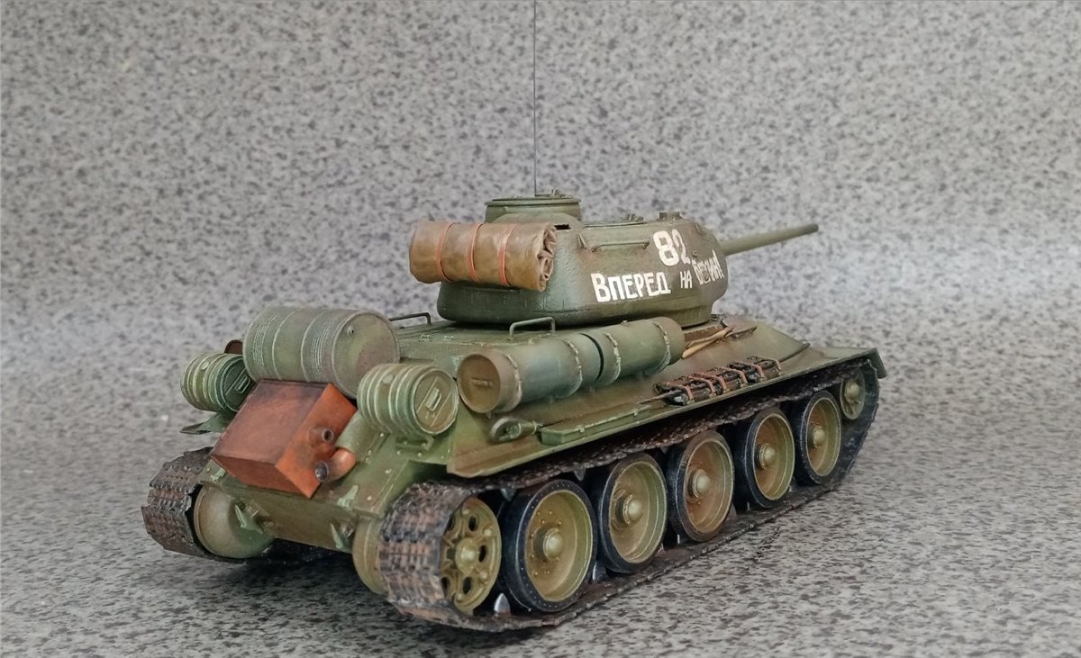 Старая Звезда, долго лежала без запчастей. Одного автора нет, работал весь клуб, восстановили детали от других моделей, сделали рабочие люки мехвода и башни. Гусеницы от МСД.