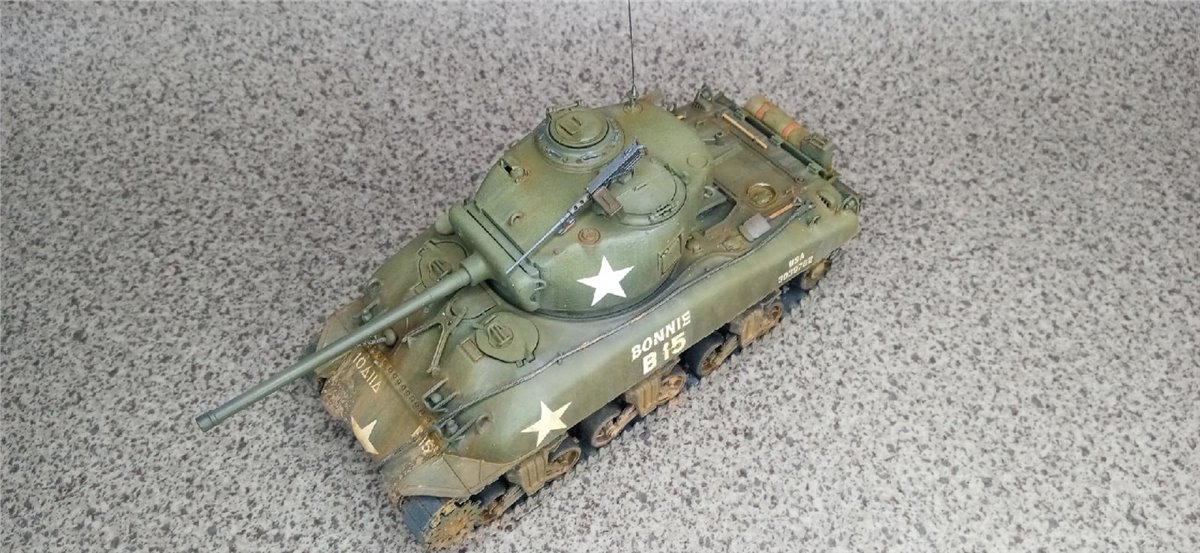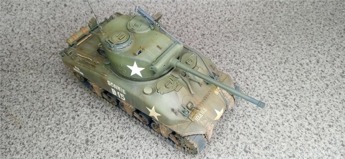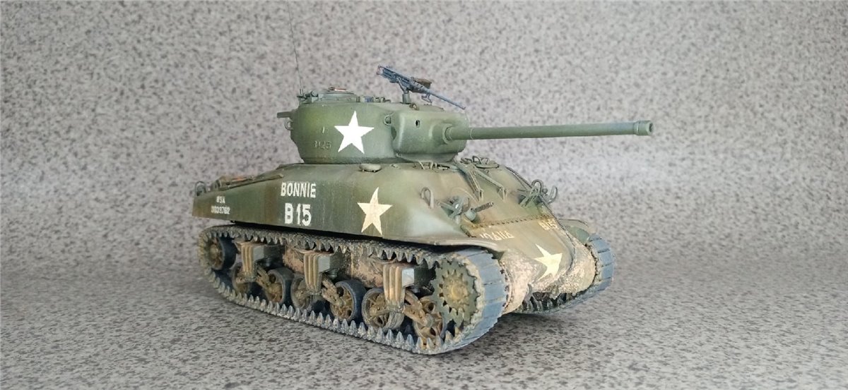 Еще одна общеклубная работа. Модель Италери. Люки рабочие, комбашенка взята от модели Шермана Звезды. Добавлены тросики, оптика из ДВД