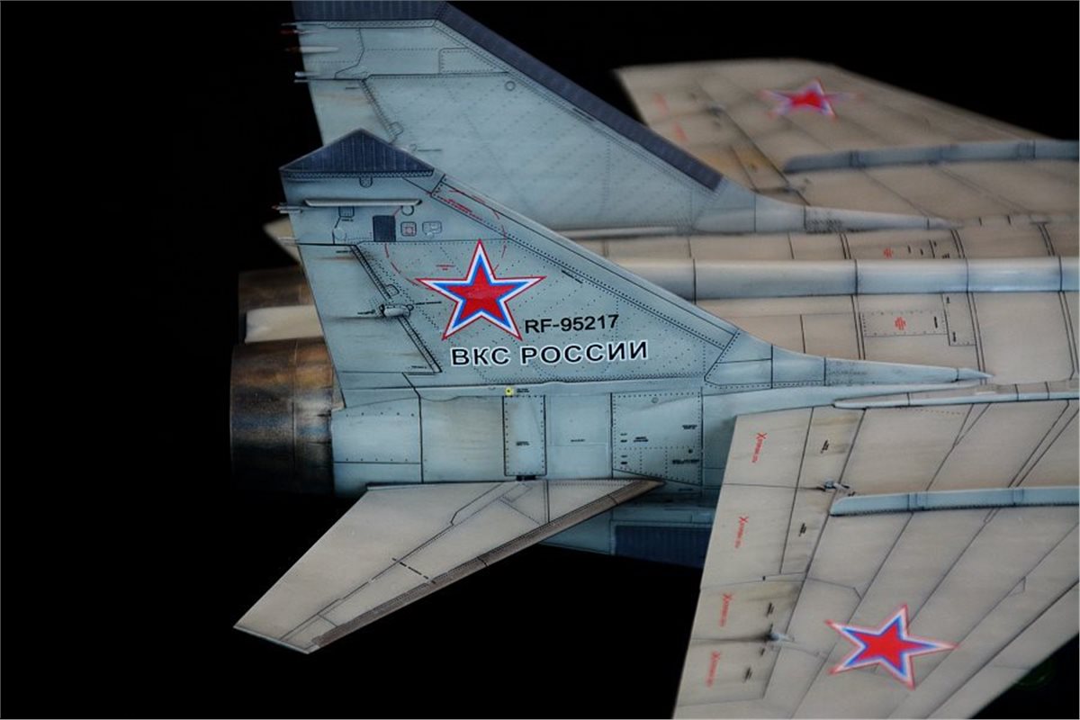Доброго времени суток, коллеги. Представляю на обзор и суд свое крайнее творение. Набор всем известный. Буду краток. Использовал из дополнений травление от ЭДИКА в кабину, конверсионный набор от АМК ( металлические стойки), и смоляной КИНЖАЛ" от Арма моделс. Сборка затруднений не вызвала. Окраска: грунт, прешейдинг, краски Ганза и Акан, немного высветлил местами, смывка от тамии, погодные явления масло художественное, сопла тонировал пудрой от Тамии., на финише лак матовый Акан. Не получилось нанести аккуратно герметик на остекление, чему очень расстроен. Сильно "ушатывать" не стал, по фотографиям прототипов - носителей "Кинжалов" борта чистенькие..... Приятного просмотра, сильно не пинайте за испорченную модель.