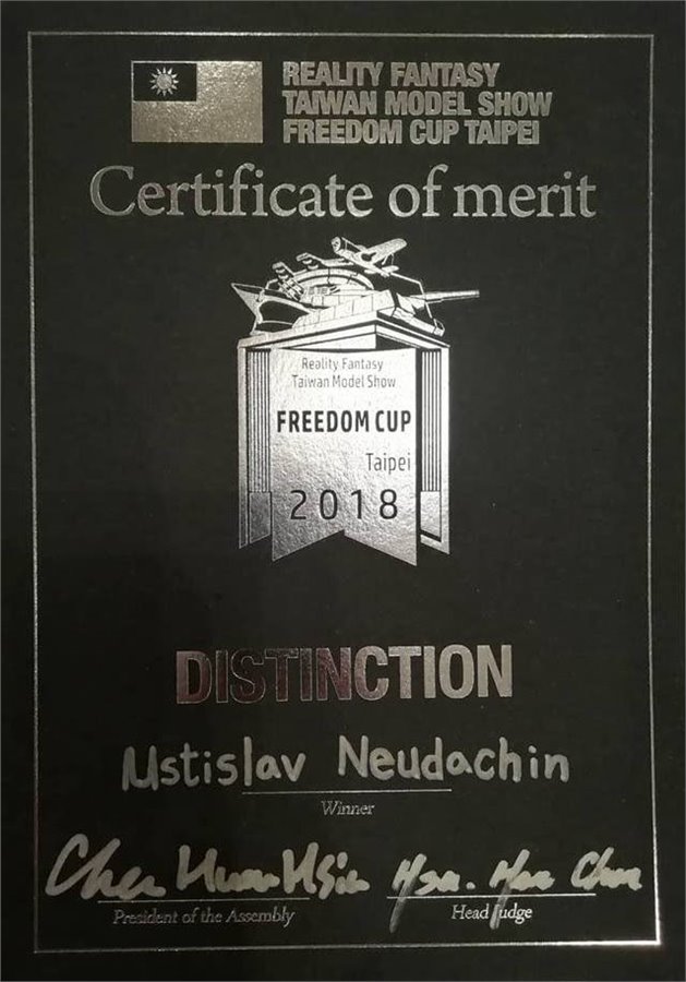3-я международная выставка-конкурс Freedom Cup - "Кубок Свободы" проходивший в Тайбейе была наша первая попытка участия в зарубежных выставках. Благодаря Константину Пономареву наши модели уехали на Тайвань. Увы, только моя модель шаротанка попала в десятку лучших моделей.