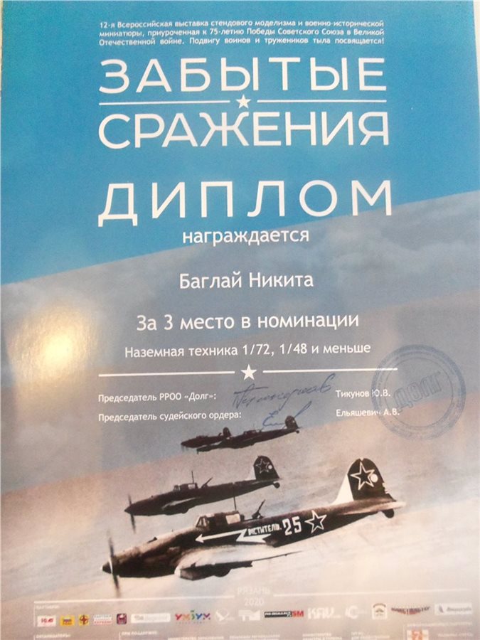 Сегодня получил детские призы и дипломы с выставки "Забытые сражения", что прошла в Рязани. Большое спасибо Юрию Тикунову , Вадиму Муляру и всем кто продвигает моделизм в нашей стране!