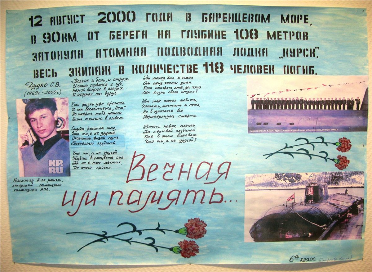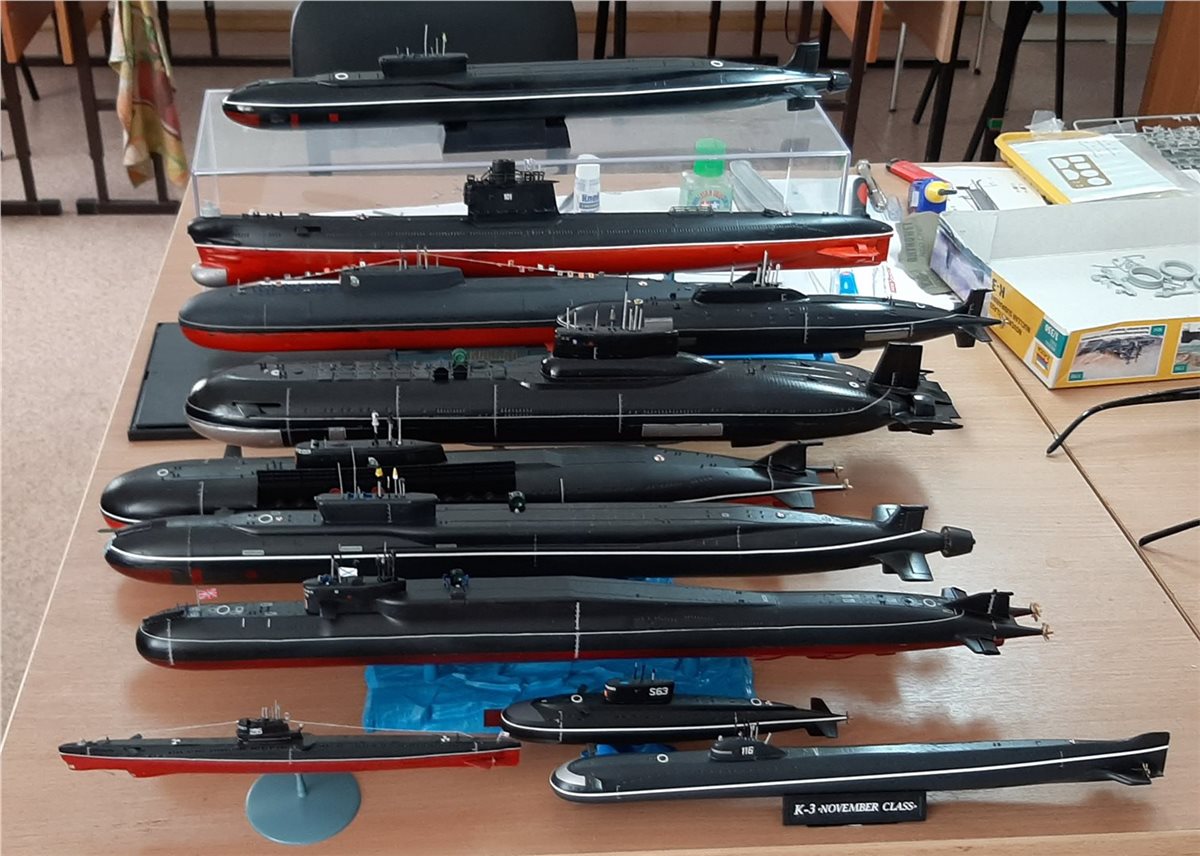Особо выделяется модель подводной лодки проекта 949А «Антей» К-141 «Курск», сделанная Николаем Кичигиным. В августе этого года двадцатилетие трагедии, а сама Петербургская школа № 134 носит звание имени Сергея Дудко. Капитан 2 ранга Сергей Владимирович Дудко служил старшим помощником командира на «Курске». Посмертно награждён орденом Мужества.