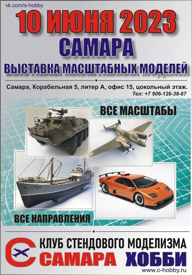 Любители стендового моделизма! 10 июня в Самаре будет проходить выставка-конкурс масштабных моделей "История в миниатюре". Приглашаются все желающие. Регистрация по ссылке https://forms.gle/21WUVMr5VCXDwuRS7