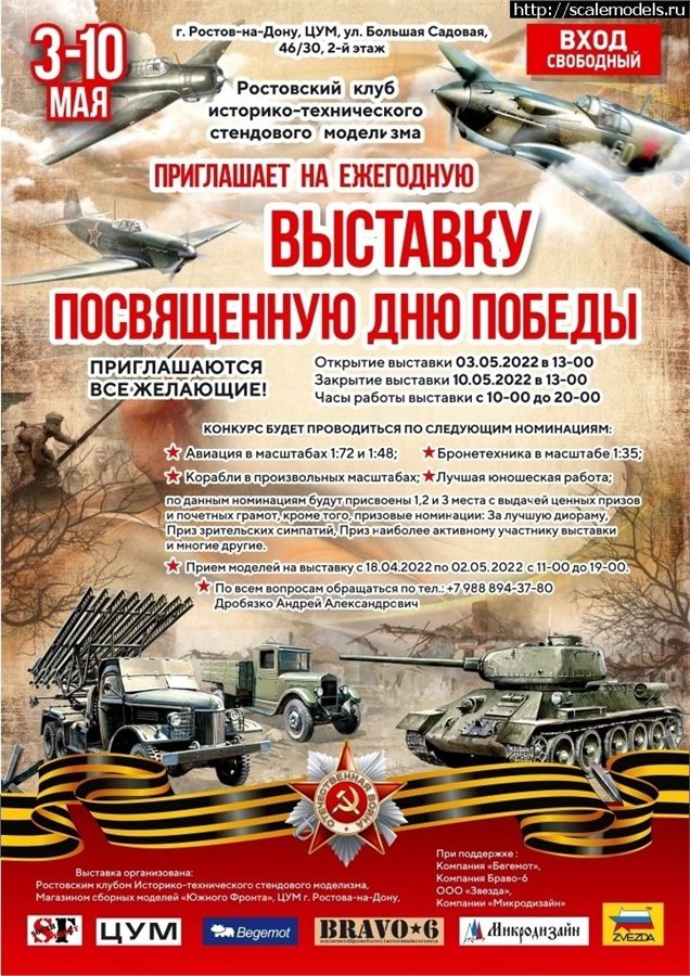 C 3 мая по 10 мая 2022 года в Ростове-на-Дону будет проходить выставка-конкурс военно-исторической миниатюры, посвящённая 77-й годовщине Дня Победы.