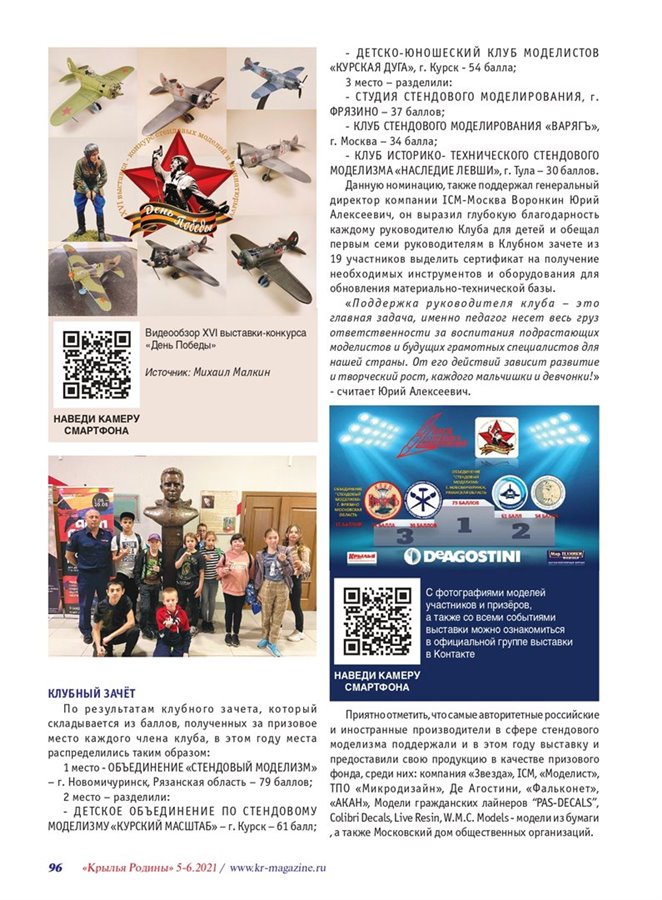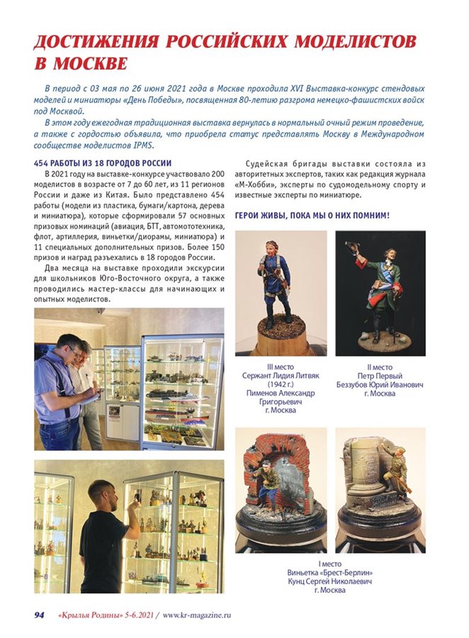 В новом выпуске Национального авиационного журнала "КРЫЛЬЯ РОДИНЫ" вышла статья о выставке-конкурсе стендовых моделей и миниатюры "ДЕНЬ ПОБЕДЫ" г. Москва и афиша IV Ежегодной выставки стендовых моделей в Таганроге.