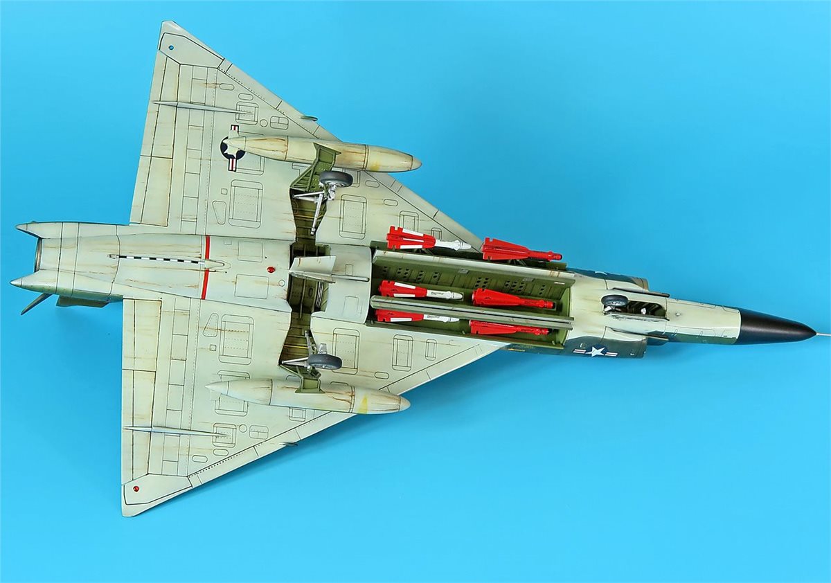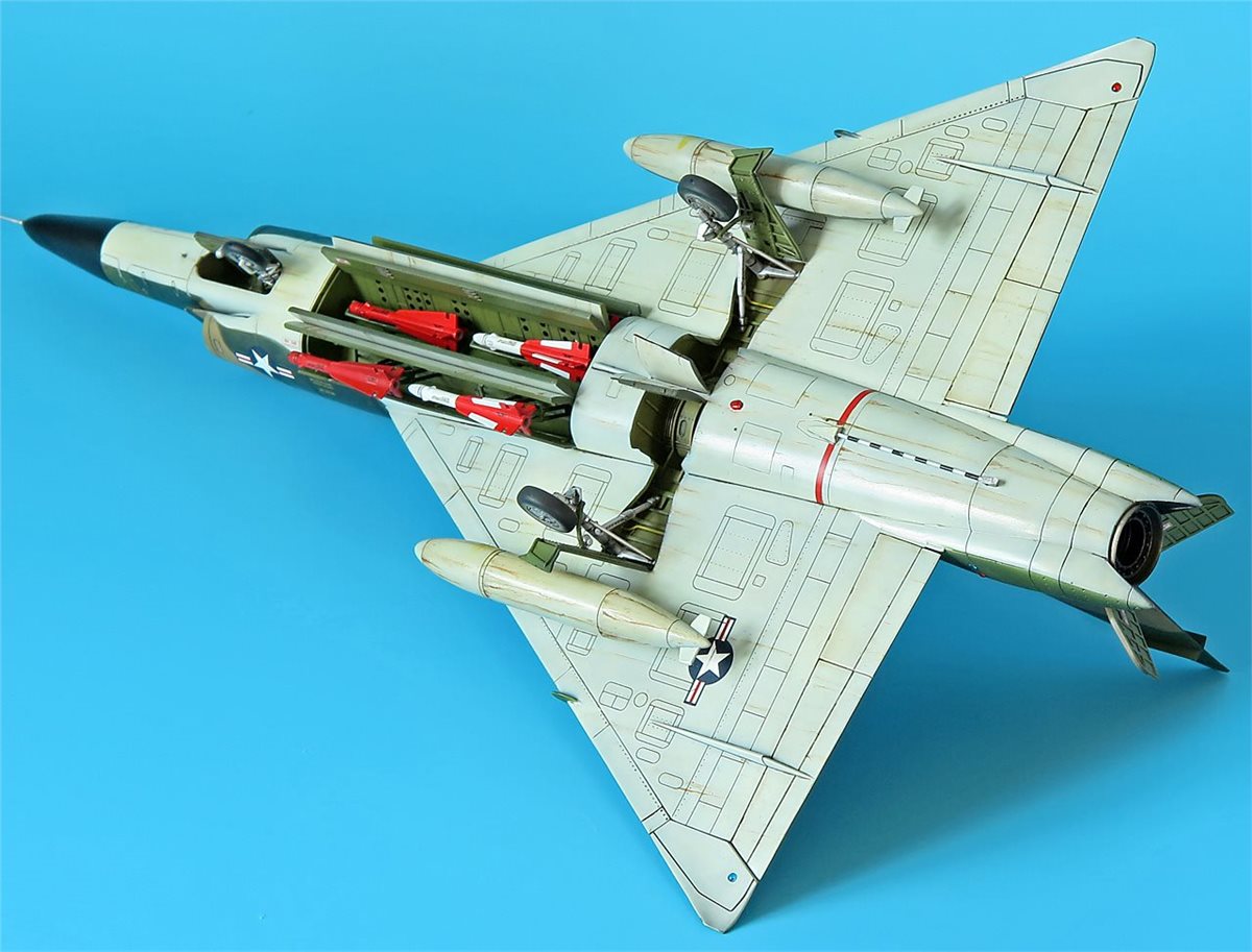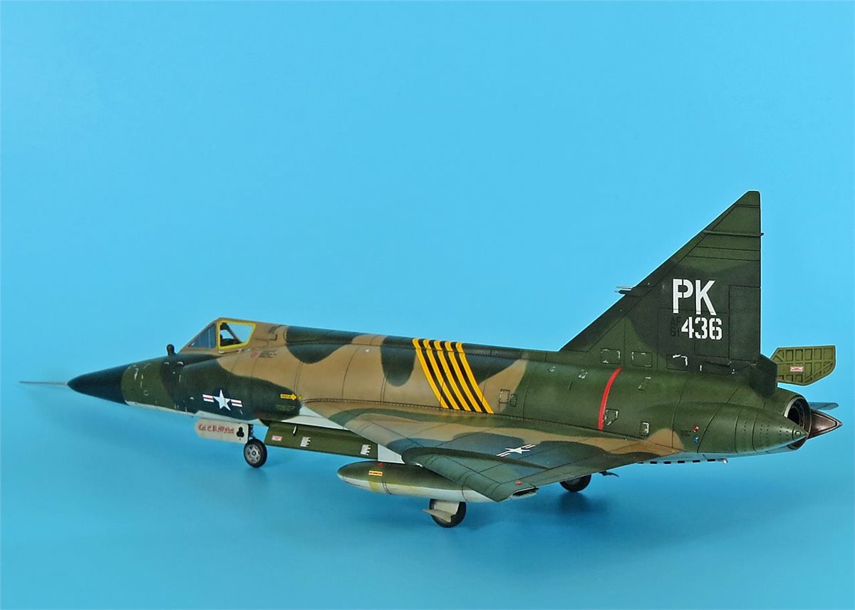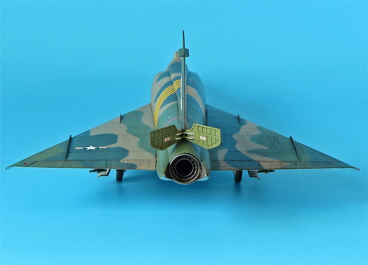 Дельта Даггер от фирмы Meng. Не скажу, что являюсь большим фанатом "сотой серии", но отдаю должное, что самолеты были очень интересные! В очередной раз перебирия свои запасы и рассматривая литники выбрал эту модель. Как мне показалось она будет не слишком сложной в сборке (в общем-то оно так и оказалось). Далее надо было выбрать прототип, решил остановиться на камуфляжном варианте, более редким для этого типа самолетов. Поэтому прототипом послужил самолет из состава 509 эскадрильи перехватчиков, база Udorn, Таиланд 1969 год. Сборка действительно не доставила особых проблем, отсек вооружения решил делать открытым, т.к. на мой взгляд это важная отличительная черта этого самолета. Кое-что по мелочи доработал, но это скорей косметика. Когда была собрана "тушка" был поражен размером, особенно с учетом того, что самолет однодвигательный!