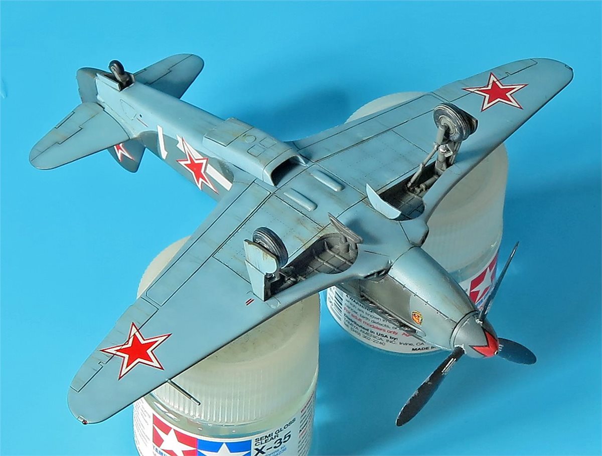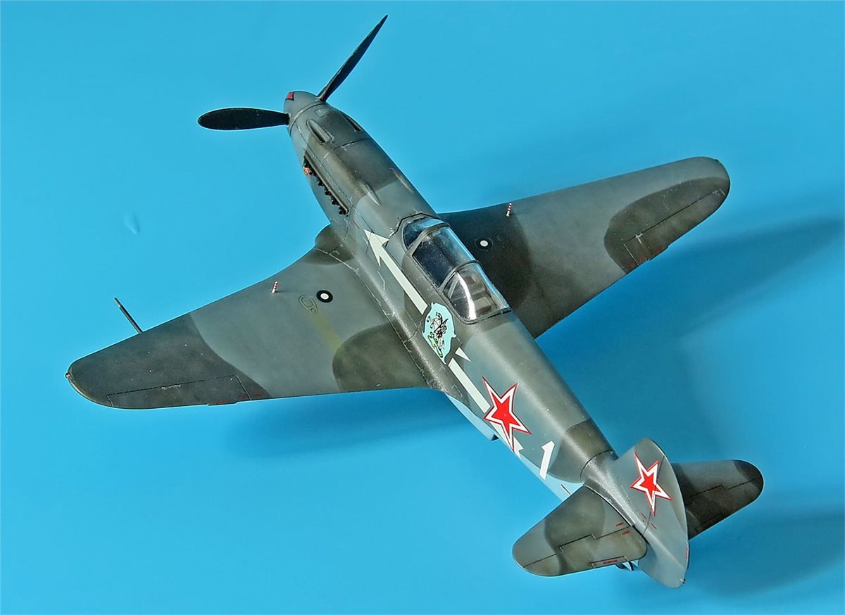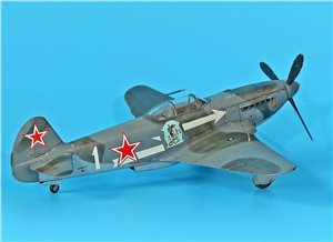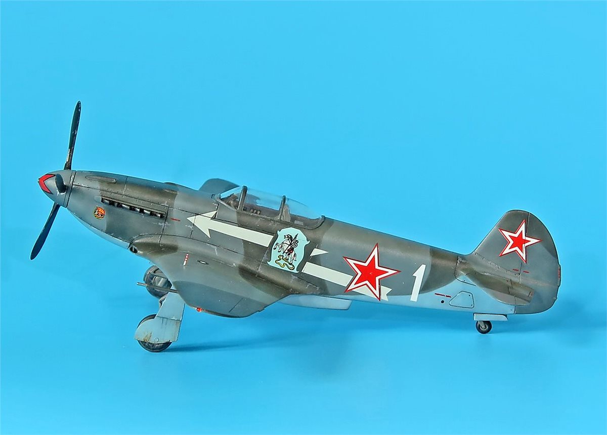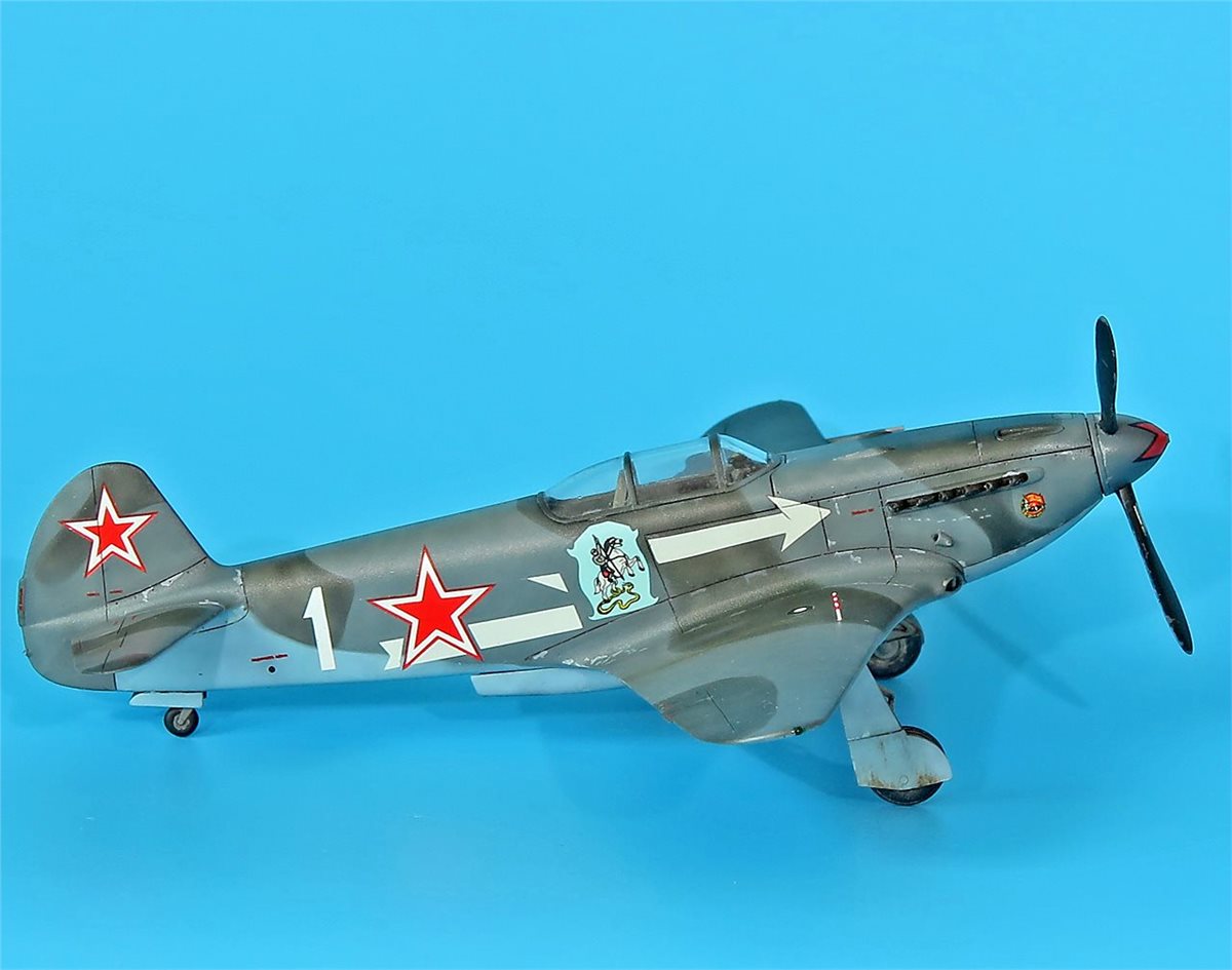 Всем известная модель от "Звезды". Коробочные борта мне показались через чур заезженными, поэтому решил взять декали из набора ЯК-3 от Hasegawa (частично, а частично оставил родные). Кок и винт - набор Prop&Jet, колеса "Экипаж". В качествпе прототипа была выбрана машина генерала-майора Георгия Захарова (303-я истребительная авиационная Смоленская Краснознамённая ордена Суворова дивизия).