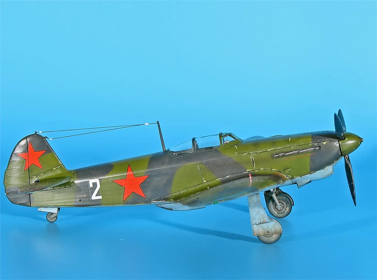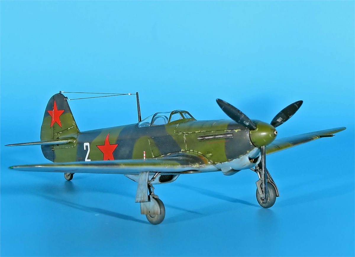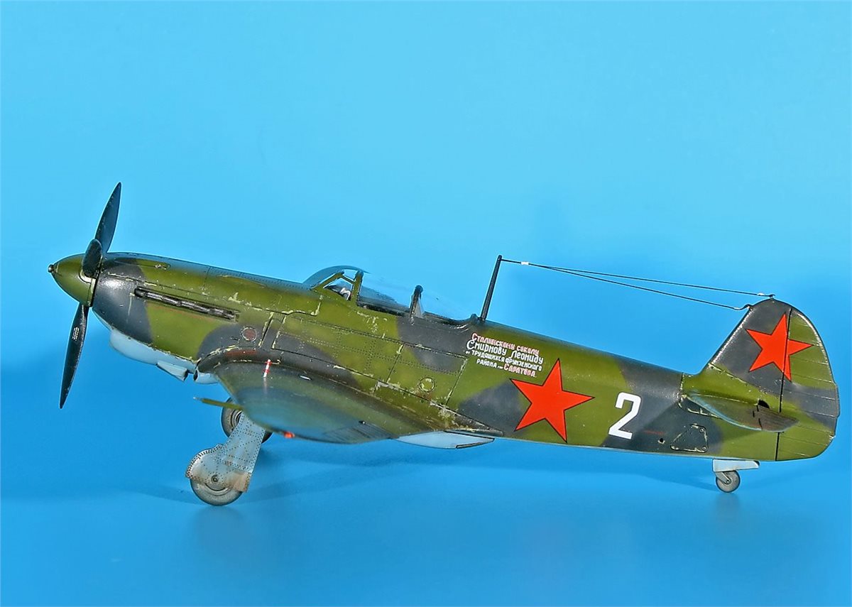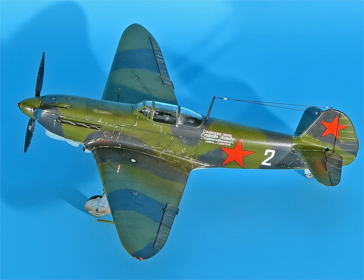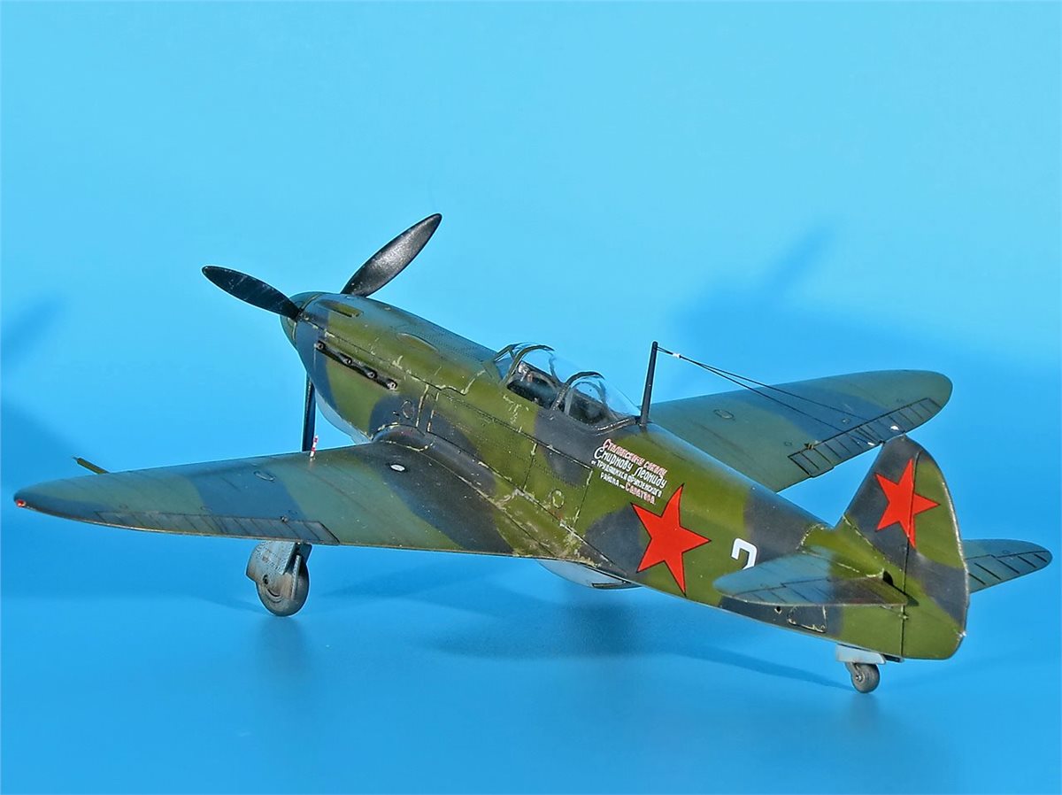 Модель истребителя ЯК-1Б от ArmaHobby в 72 масштабе. Модель довольно приятная в сборке, на твердую 4! Красил аканом и RealColor. В качестве прототипа был выбран именной самолет – подарок "Сталинскому соколу Леониду Смирнову от трудящихся Фрунзенского района г.Саратова" (бортовой номер 2) 148ИАП. У прототипа довольно необычная история. Сам командир эскадрильи капитан Л.Д. Смирнов (7+4) не вернулся с задания на другом Як-1 из района Неберджаевская 6.5.43 г. А чуть позже, 11 мая 1943 г., старший лейтенант М.В. Шкомплектов совершил посадку на аэродром Анапа занятый словаками. Словаки, базировавшиеся в Анапе, захватили, как они посчитали, перебежчика (в действительности Шкомплектова взяли в плен, летчик вернулся из него и прошел проверку без каких-либо последствий для себя). Самолет передали немецкой JG 52. После опробования 12 мая его перегнали в Тамань, а затем в Керчь. Эта машина также использовалась немцами в боях, так как по докладам советской стороны отмечалось применение противником самолета Як-1 со звездами и желтой надписью от кабины до хвоста. Захваченный истребитель впоследствии отправили в Германию, где его показали высшему командованию Люфтваффе на выставке трофеев 3 сентября 1943 г. в Рехлине. Затем машину выставили для всеобщего обозрения в г.Мекленбург (ныне г.Шверин). Дальнейшая судьба самолета неизвестна.