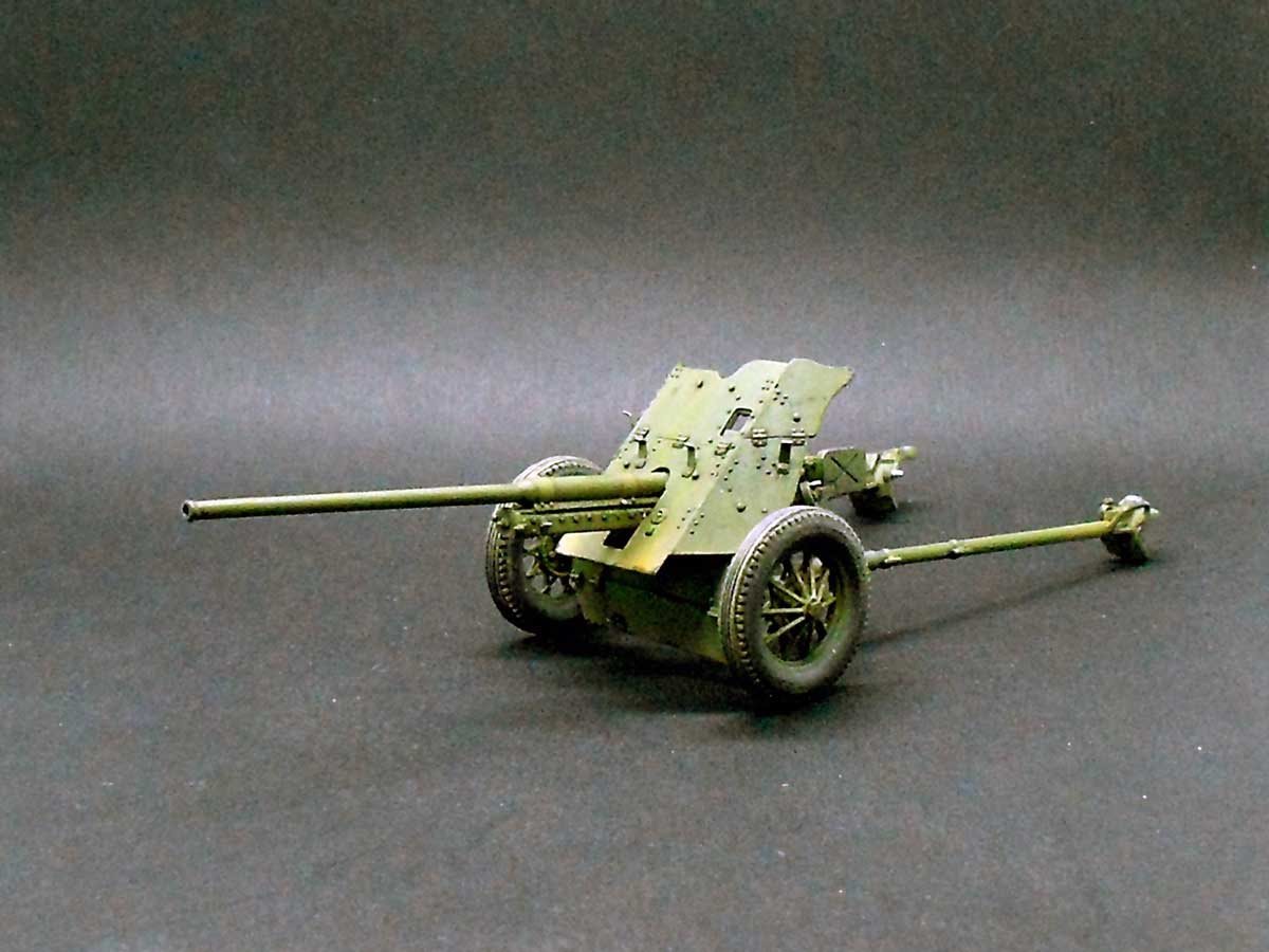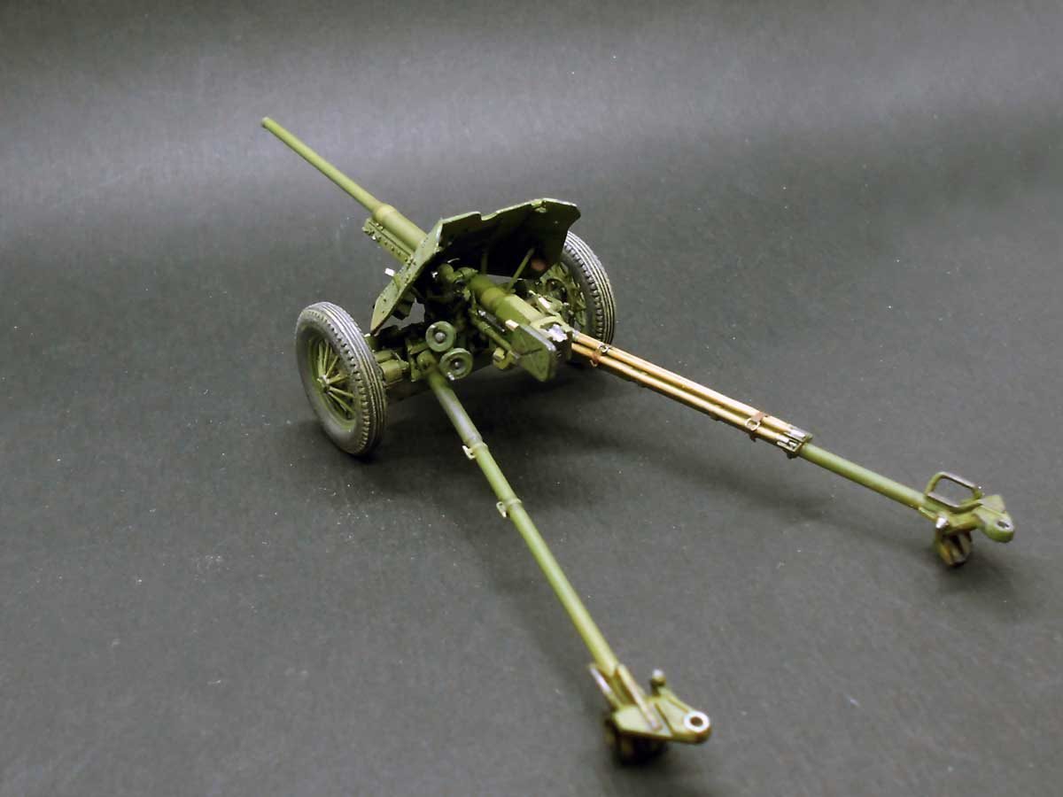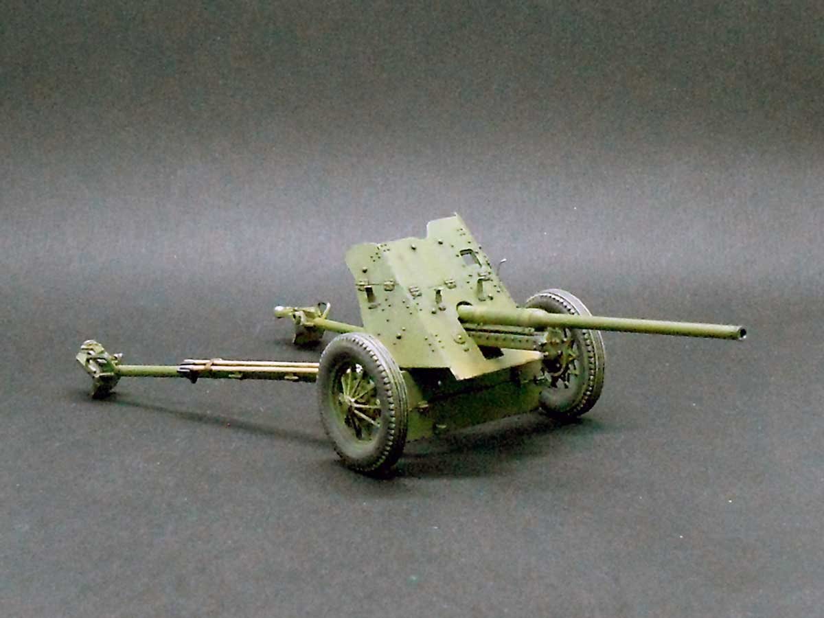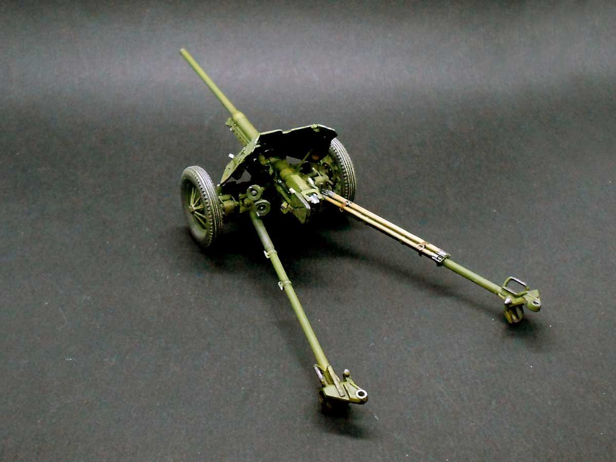 на лобовой части щита и т.д. отлично повторяют прототип. Это лучшая 45ятка из ранее выпускавшихся, включая, в том числе и модели прародительницы - РАК-36. Производитель предполагает сборку модели только в боевом положении, нельзя без дополнительного вмешательства
