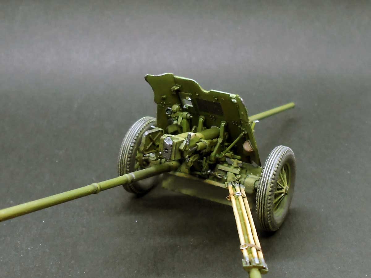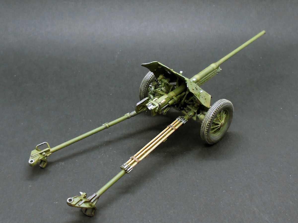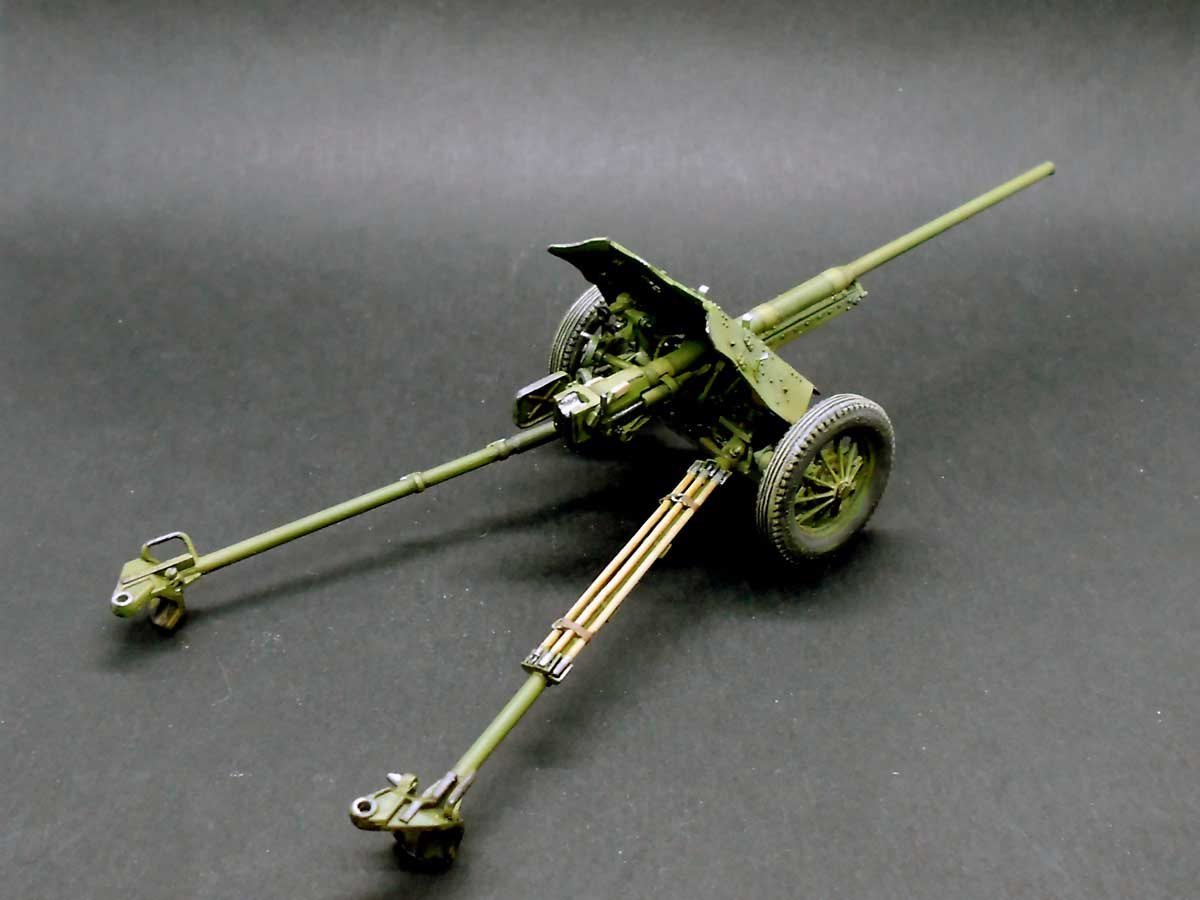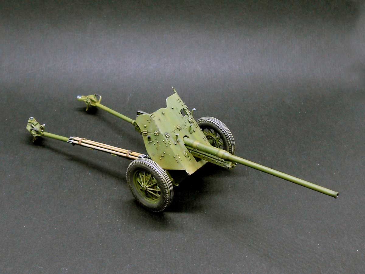 на лобовой части щита и т.д. отлично повторяют прототип. Это лучшая 45ятка из ранее выпускавшихся, включая, в том числе и модели прародительницы - РАК-36. Производитель предполагает сборку модели только в боевом положении, нельзя без дополнительного вмешательства