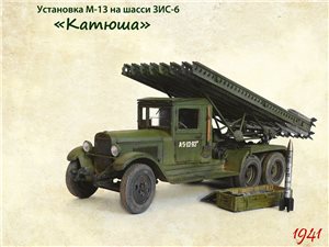 Реактивная пусковая установка М-13 на шасси ЗИС-6 - первый серийный вариант реактивного миномета "Катюша".