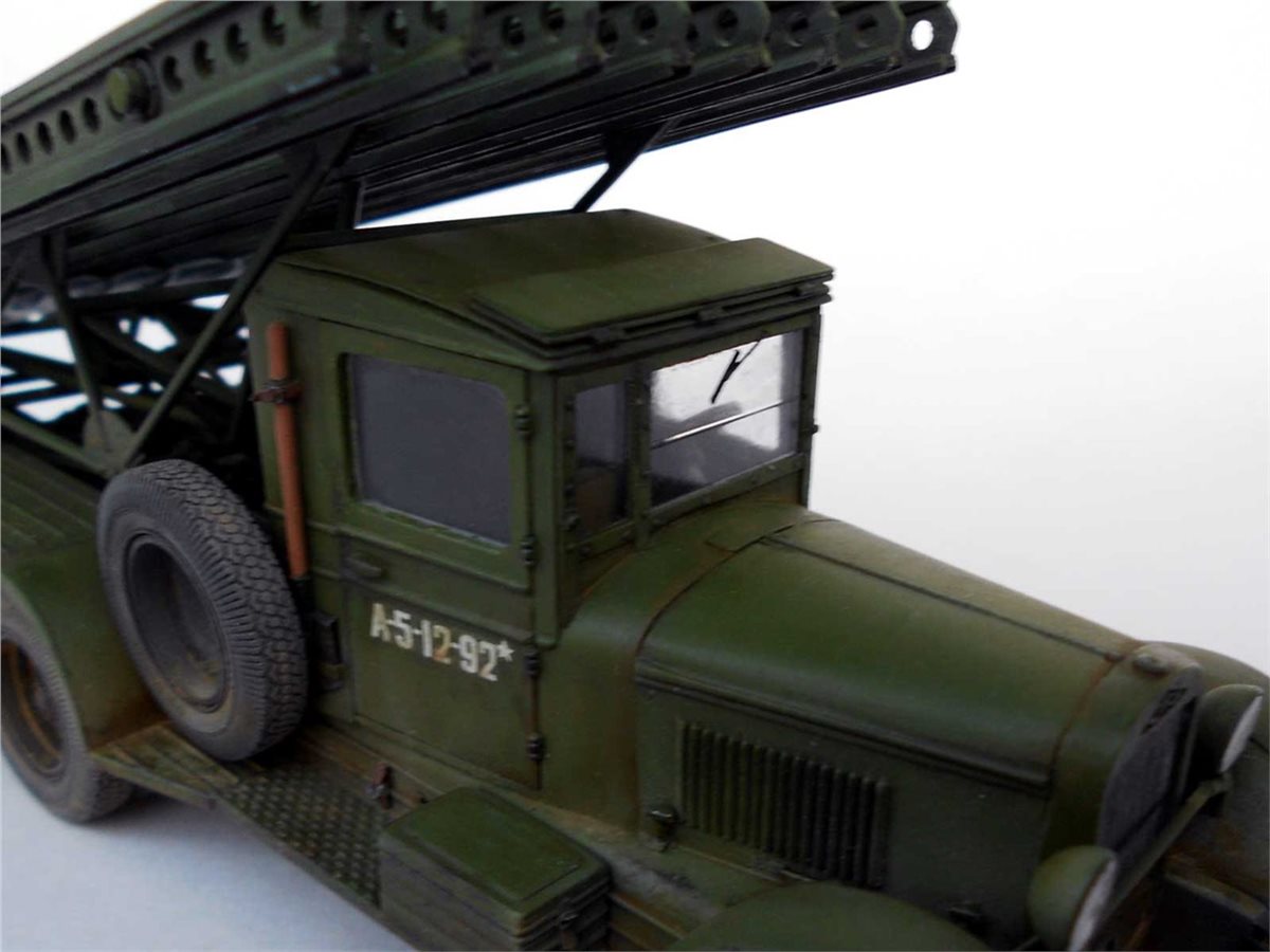 Из дополнений колеса от "Комплект Зип" и фары Эльф (в качестве лампочек микро бисер). Окраска коктейлем из Тамии, реактивные снаряды - 2 оттенка стали от Pacific88 . Обгадинг и задиринг - масло "Сонет", пигменты Mig. Маркировка