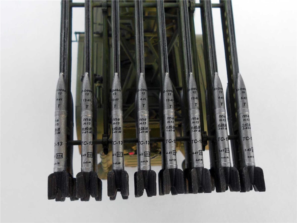Модель от АРК на сегодня пожалуй безальтернативная, представляет из себя слегка апгрейженную модель разработки фирмы Алан 20-летней давности. В наборе у АРК новая ферма, направляющие и собственно реактивные снаряды.