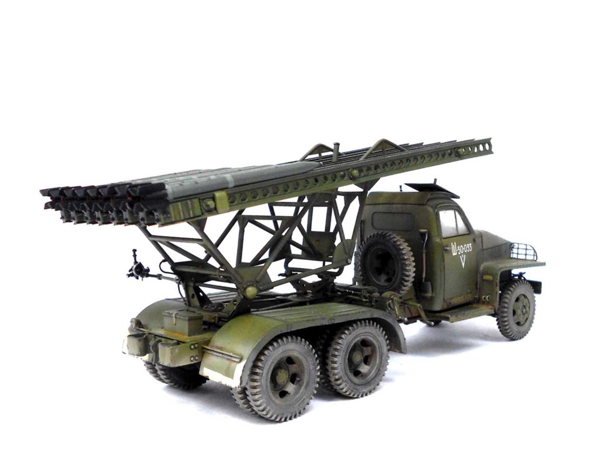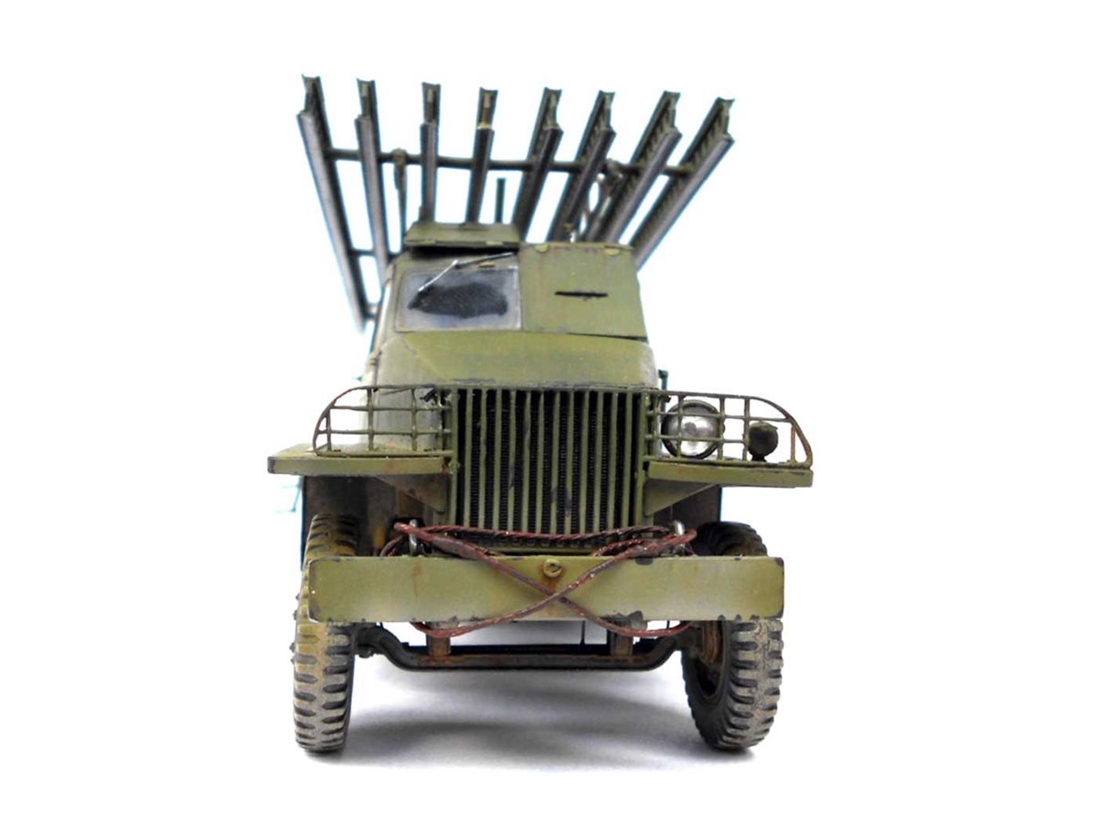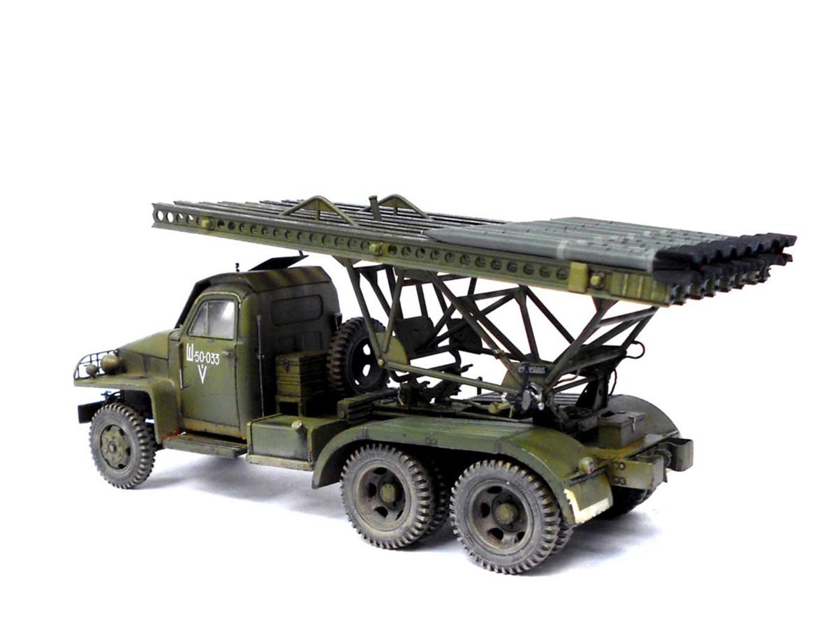 - установка снаряжена фугасными реактивными снарядами М-20, запускались они только с верхнего ряда направляющих.