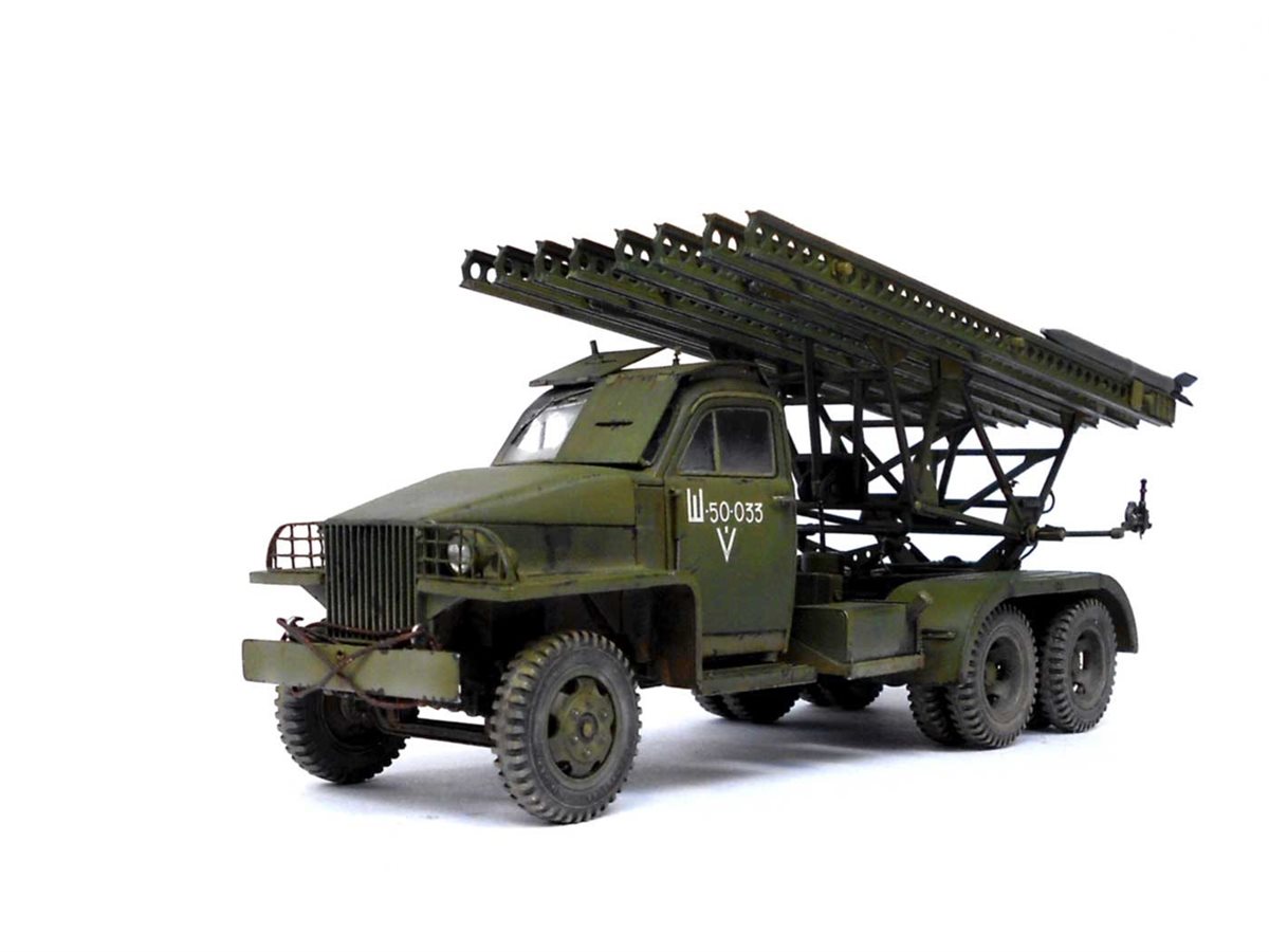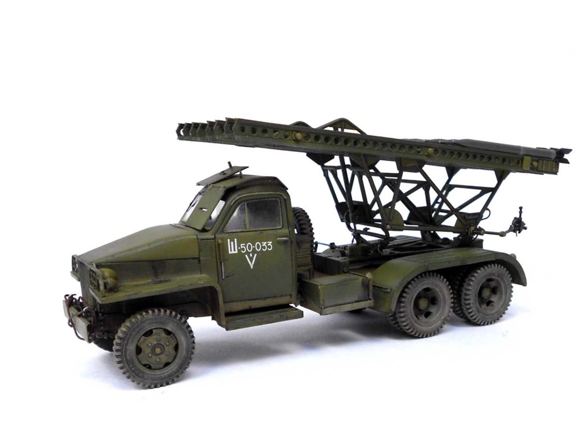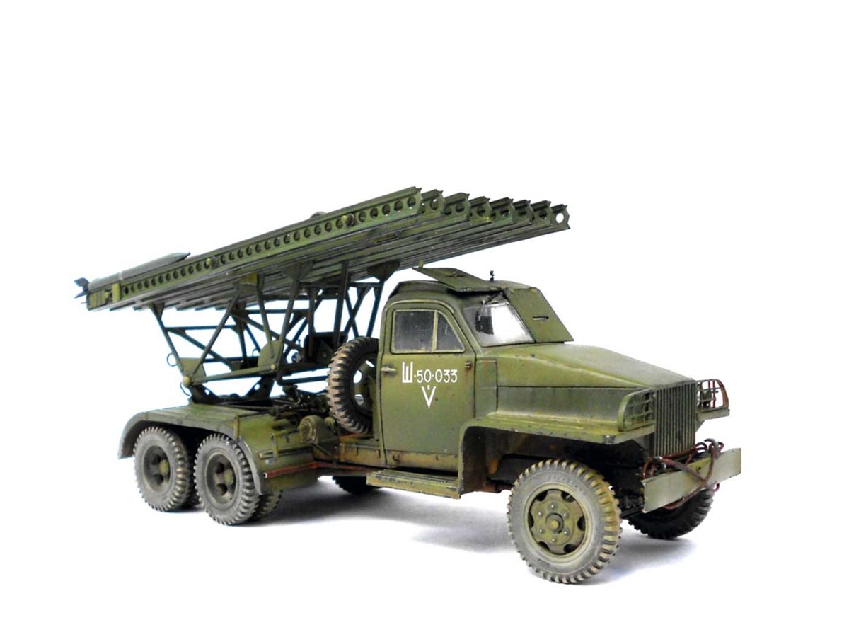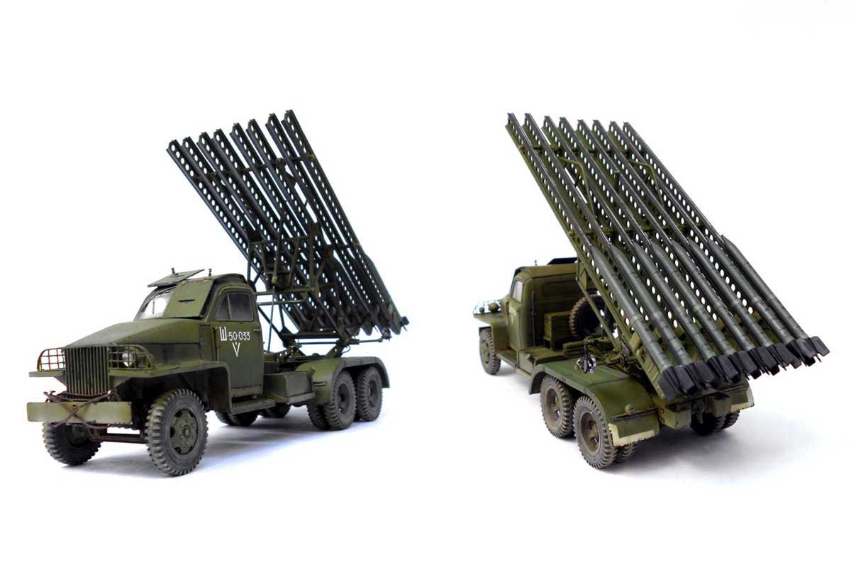 - установка снаряжена фугасными реактивными снарядами М-20, запускались они только с верхнего ряда направляющих.
