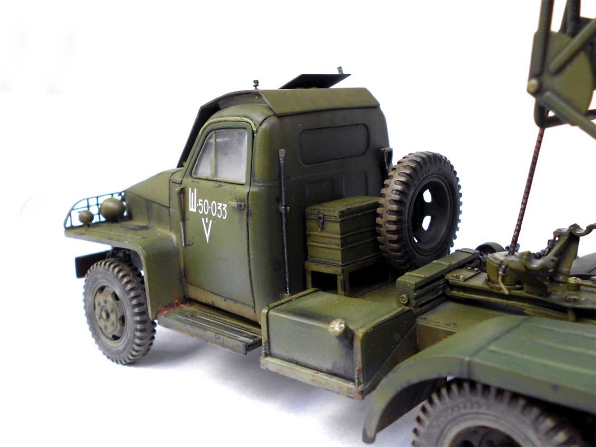 Модель представляет собой так называемый "ранний" вариант установки на шасси Studebaker US6, с моховиками на правой стороне. Студер решил сделать не полноприводным - тип U7, к тому же одноглазым. Немного разнообразил вооружение