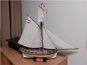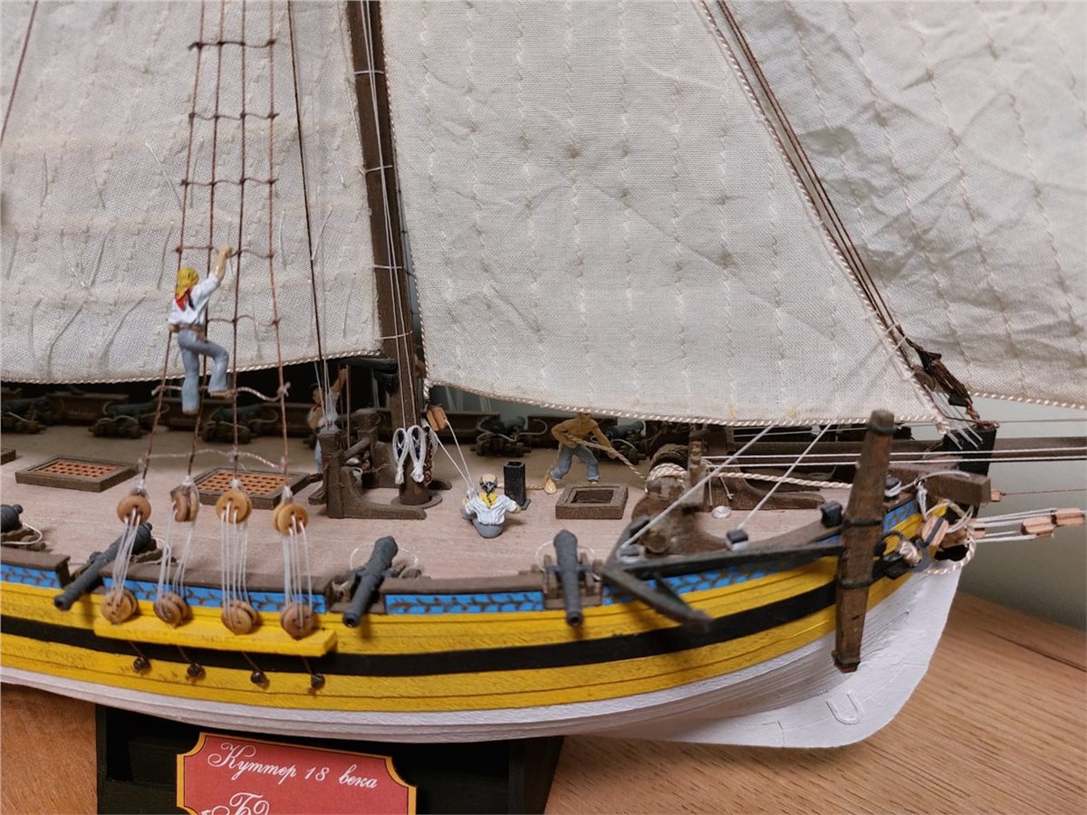 Представленная модель британского катера относится к первой половине 18 века, когда на смену традиции "пряничного домика" уже давно и прочно пришла традиция строгой аскетичности и утилитарности. Тем не менее, некоторые суда продолжали украшать рисунками, барельефами и резьбовыми элементами. Особенно это касается судов, несших службу в колониях Великобритании.