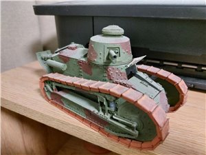 Представленная модель выполнена в классическом французском двухцветном камуфляже 1918 года. Башня, направляющие катки, ленивец, створки бронелюков сохраняют подвижность. Танк имеет полный интерьер места мехвода с необычной спинкой из кожанных тросов, натянутых между балками каркаса и боевого отделения с орудием, тросом для размещения командира-стрелка и боеукладки снарядов калибра 37 мм.
