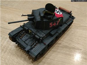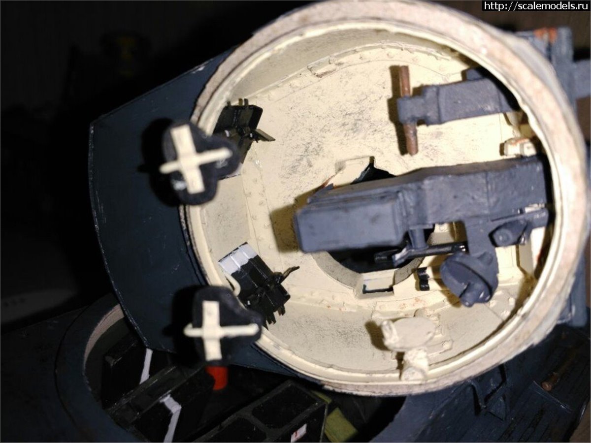 Мои эксперименты с освещением модели. Боевое отделение оснащено танковым фонарем, который питается от батареи.