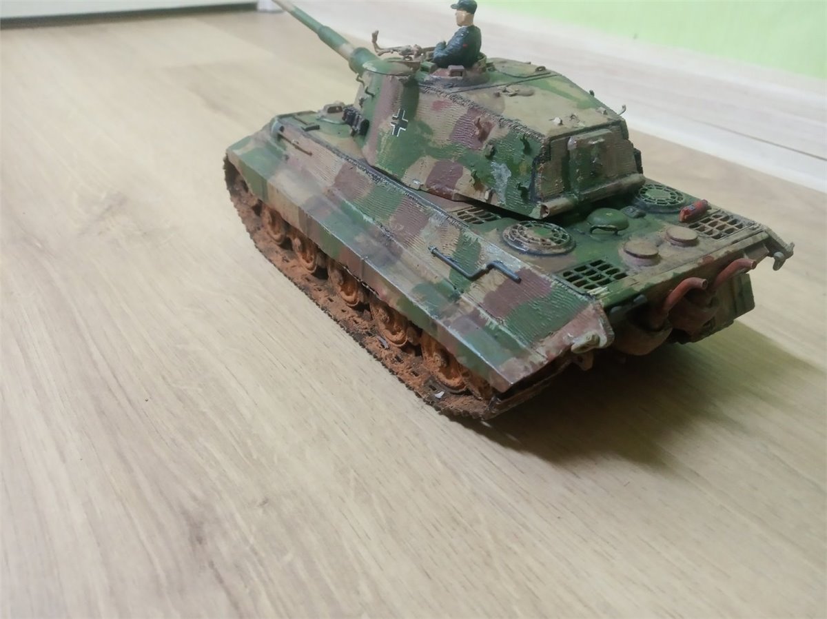 Немецкий тяжелый танк, производившийся с 1944 по 1945 гг,в руках умелого экипажа была грозной машиной,но в тигре было больше минусов чем плюсов,т.к. танк производился в конце войны у него был ряд недостатков,например броня,она была толстая,но хрупкая, из-за отсутсия присадок,броня при попадании трескалаясь и лопалась чо наносило урон экипажу