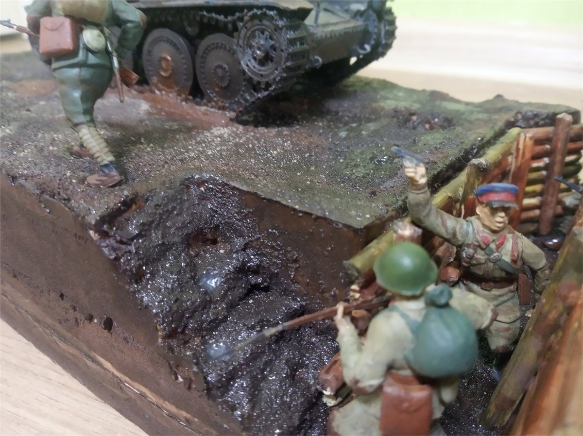 Белостокско-Минское сражение началось 22 июня 1941 года и закончилось 3 июля 1941 года,на диораме изображена битва под Минском,где советские солаты обороняются от немецкого танка