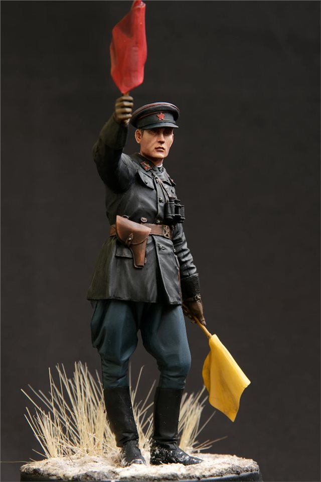 Офицер бронетанковых войск от Quasar Miniatures в масштабе 1/16. Красил акрилом Vallejo. Основание - гипс, текстурная паста Vallejo, пигменты Zip.
