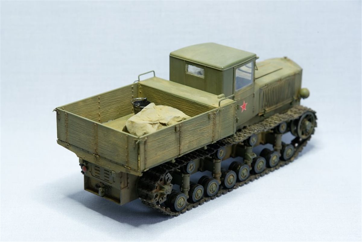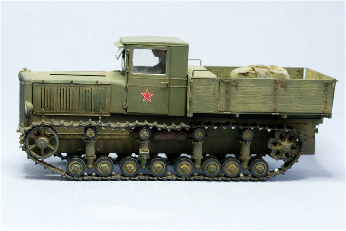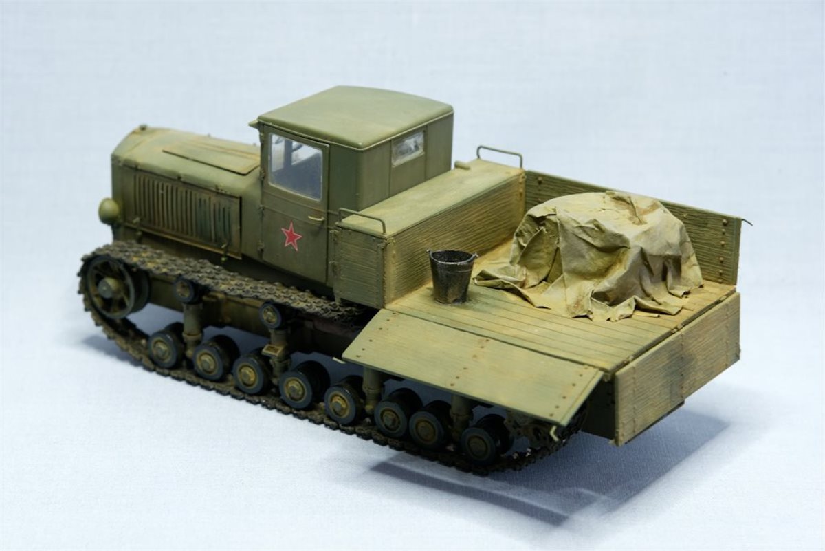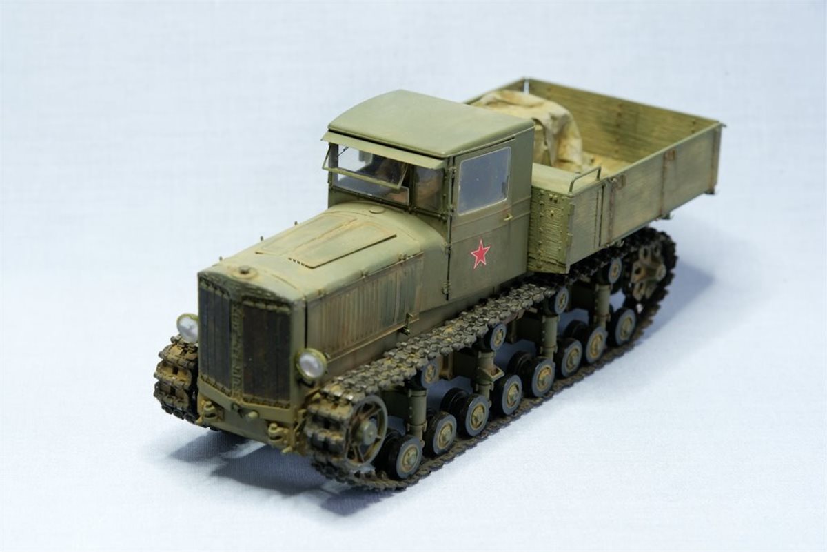 Собирал его специально для гаубицы Б-4. Сильно в матчасть не вдавался, но кое-что поменял: капот с поздними створками от VoyagerModel, петли рабочие из того-же набора, траки металл от Master Club, пересадил водителя ( от Miniart) на правильную сторону, переставил глушитель, скамейки из кузова решил убрать ( что-бы не как у всех), ведро - травление от "Микродизайна", брезент - обёрточная бумага. Окрас, как обычно: Vallejo, художественные масло и пастель, пигменты Wilder.