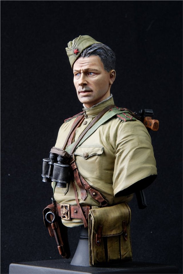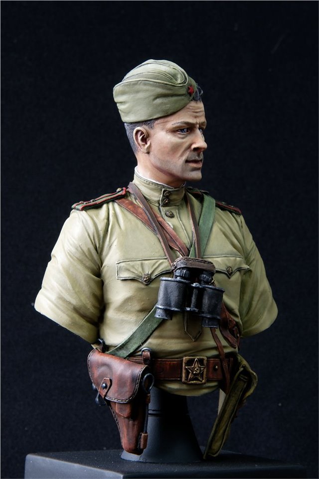 Бюст старшего лейтенанта РККА от Medieval Forge Miniatures в масштабе 1/10. Окраска акрилом от Vallejo/