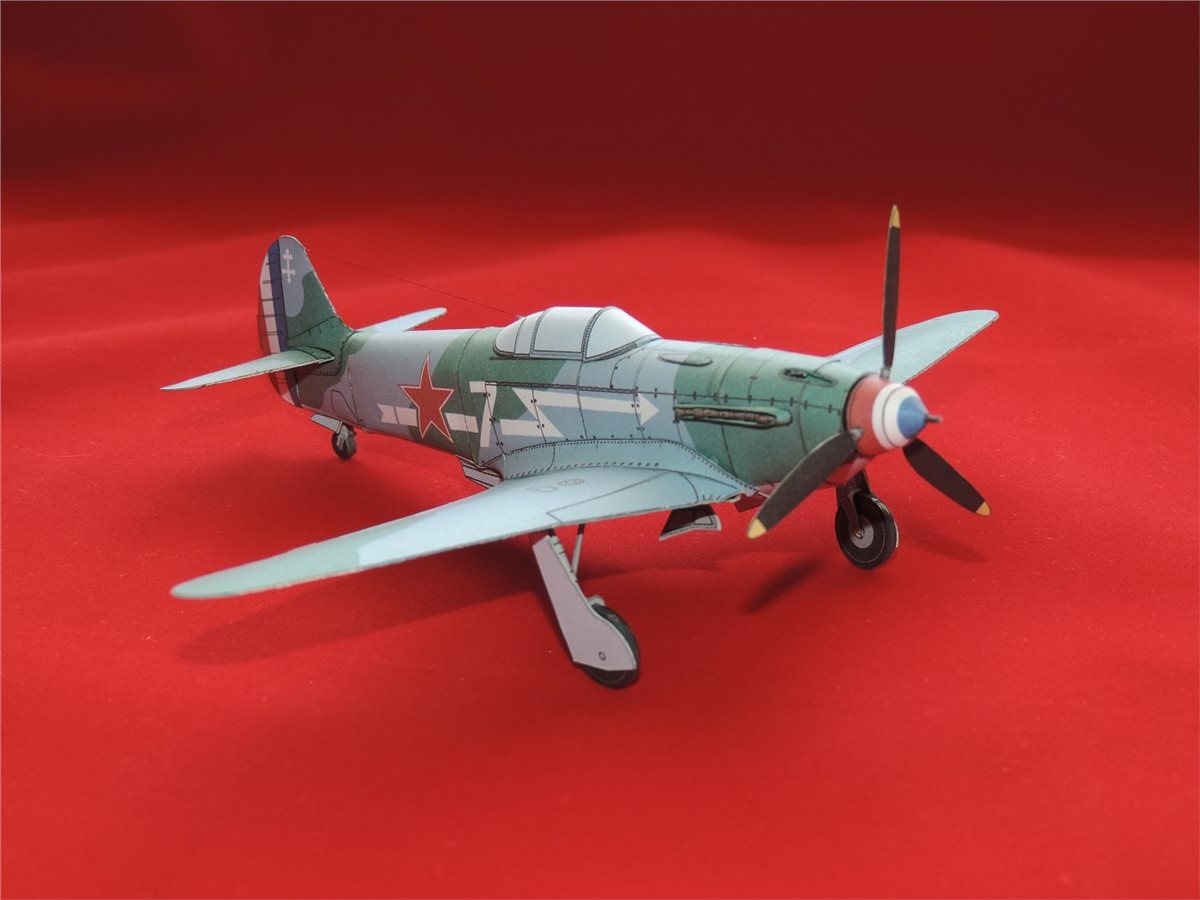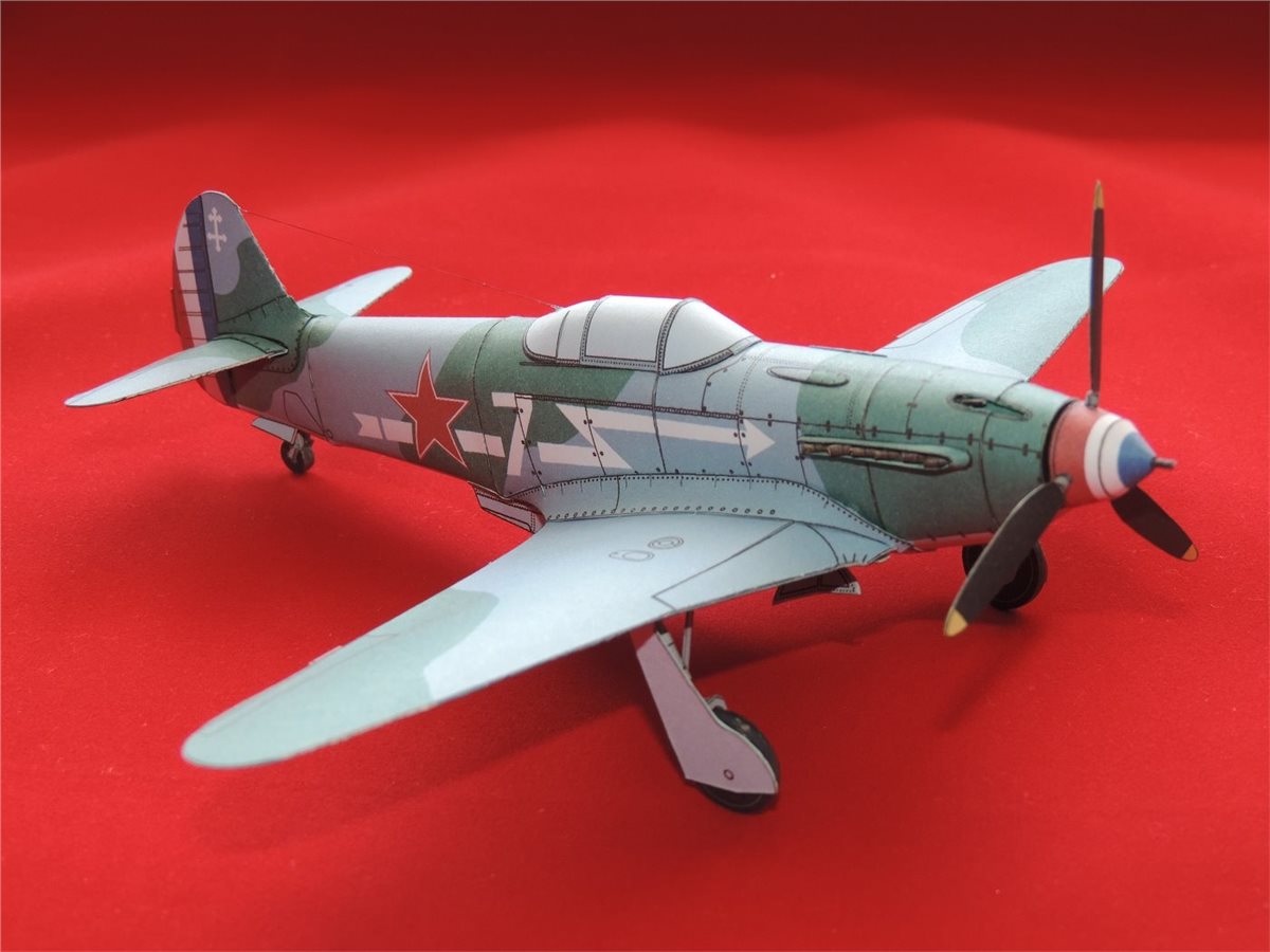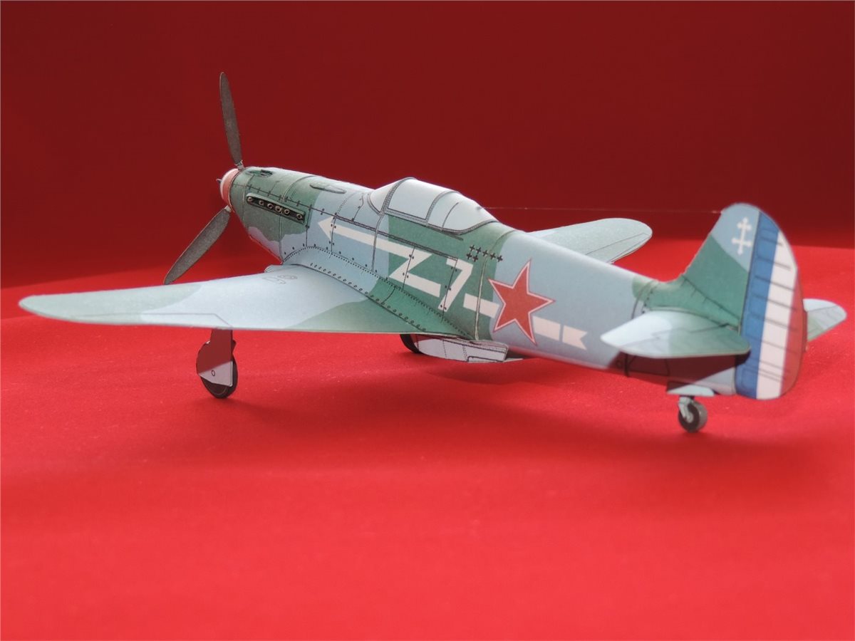 Бумажная модель в упрощённом варианте исполнения самолёта Як-3 принадлежавшего полку "Нормандия-Неман". Б/н "7", к сожалению не смог установить за кем записан. Сам прототип модели самолёта явился продолжением развития истребителей Як-1/1М и появился на