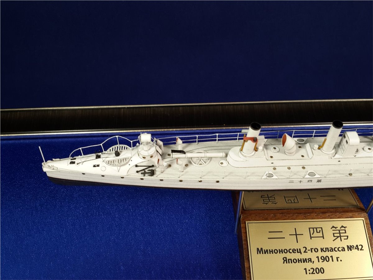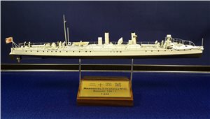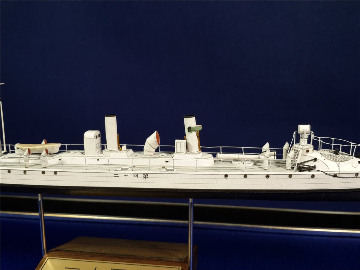 огрехи перенесены на модель, как давал их автор. Сходимость деталей на твёрдую 4. Про уровень сложности, скажу одно, если будете дорабатывать то можно здорово уйти от 2-го заявленного, но и смотрится он совсем по другому тогда. Длина миноносца получилась 23