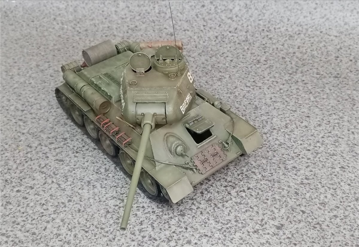 Старая Звезда, долго лежала без запчастей. Одного автора нет, работал весь клуб, восстановили детали от других моделей, сделали рабочие люки мехвода и башни. Гусеницы от МСД.