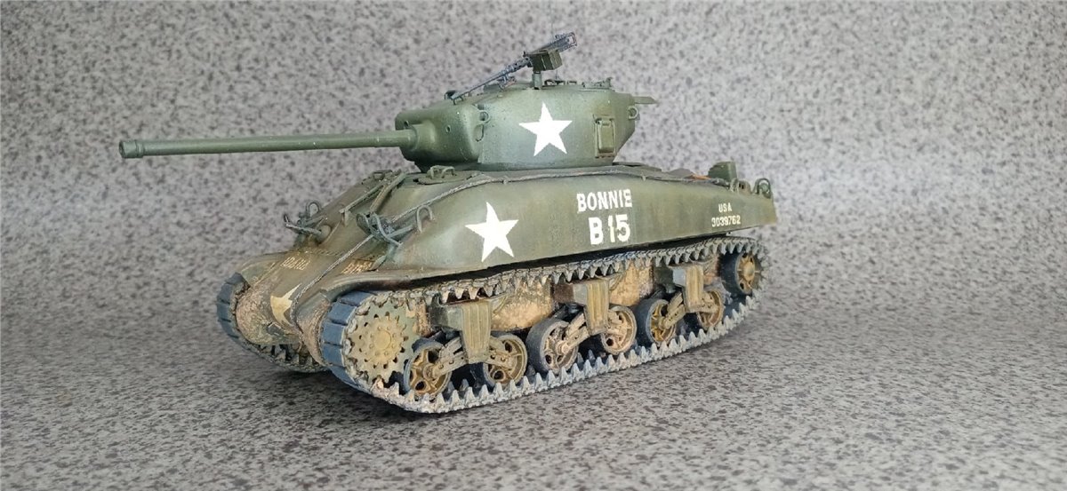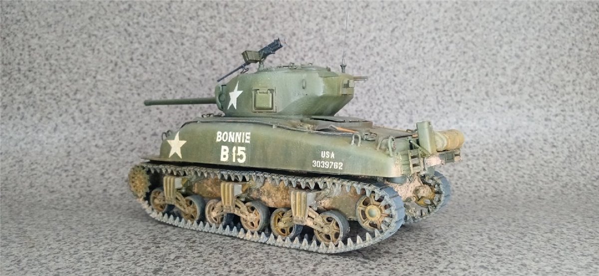 Еще одна общеклубная работа. Модель Италери. Люки рабочие, комбашенка взята от модели Шермана Звезды. Добавлены тросики, оптика из ДВД