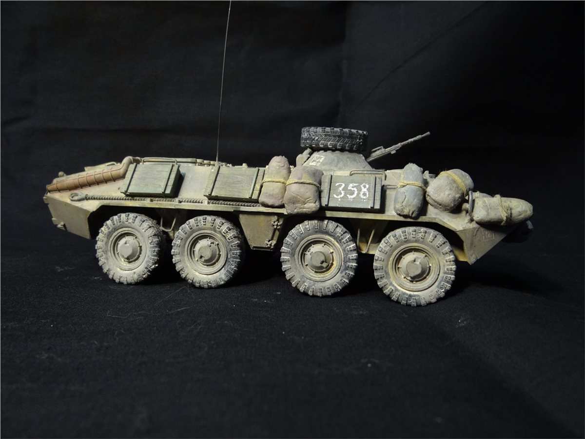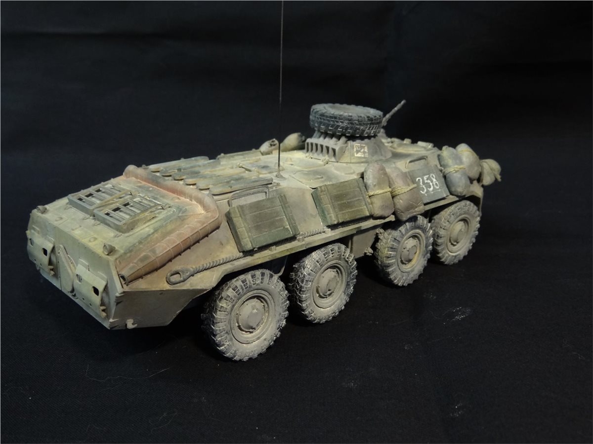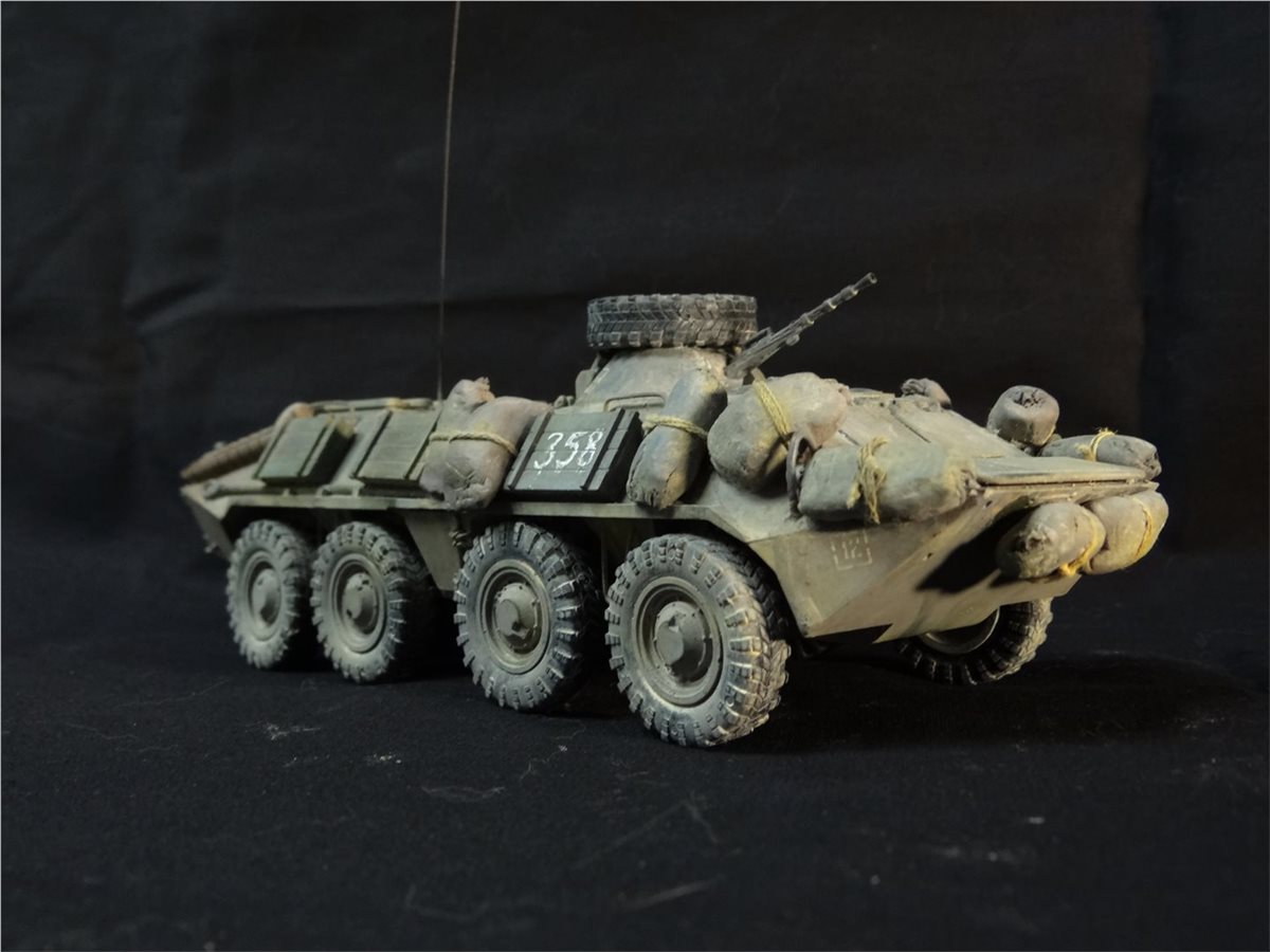 Модель БТР-70 (Афган) создана на базе одноименного набора "Звезды", но под собственными впечатлениями от общения с ветераном афганской войны Сергеем Александровичем Подлиневым