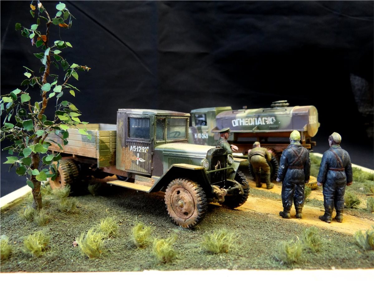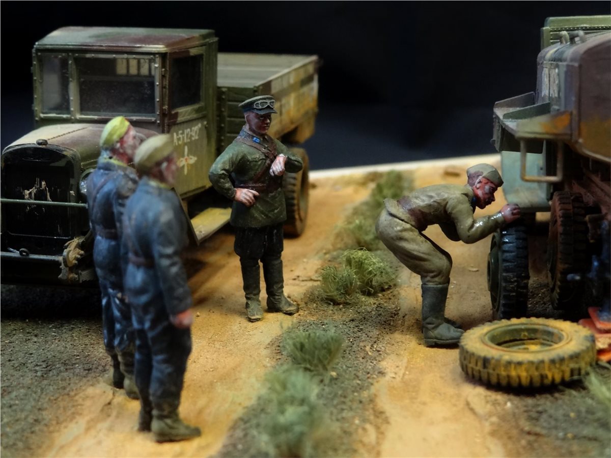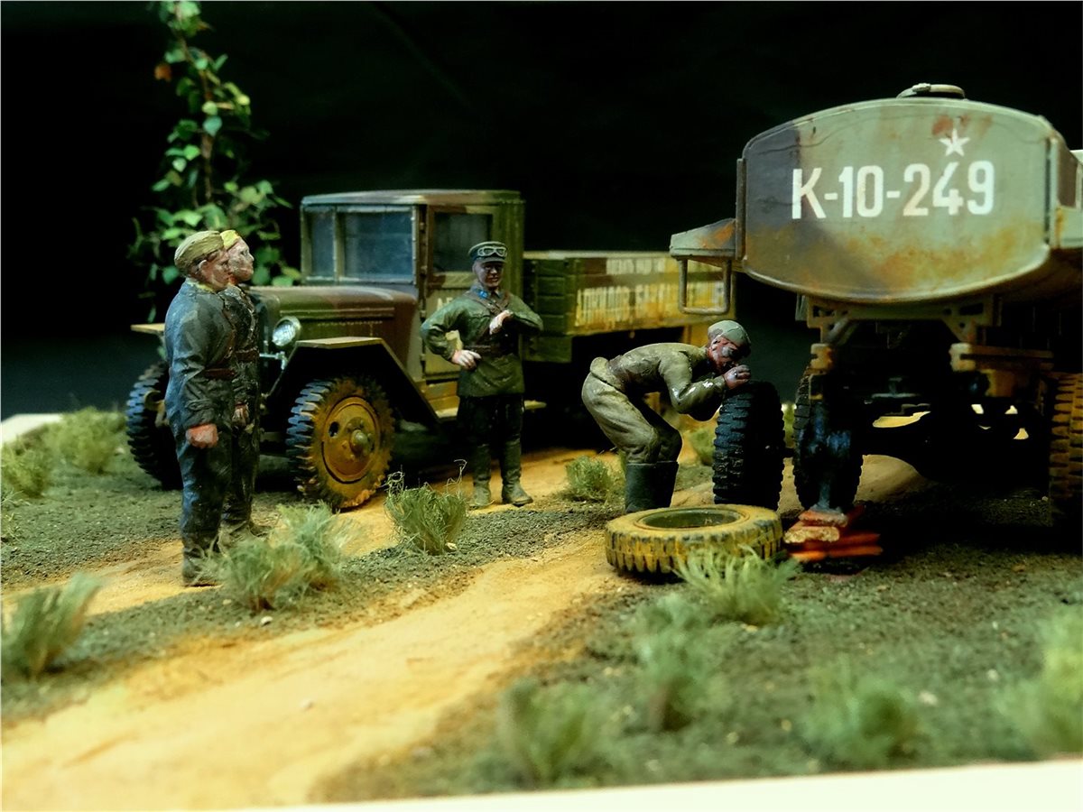 Диорама "Учитесь у старшины" построена на самодельном основании с использованием наборов "Звезды", "Восточного Экспресса" и "ICM", подвергнутых некоторым доработкам. Вторая сюжетная работа.