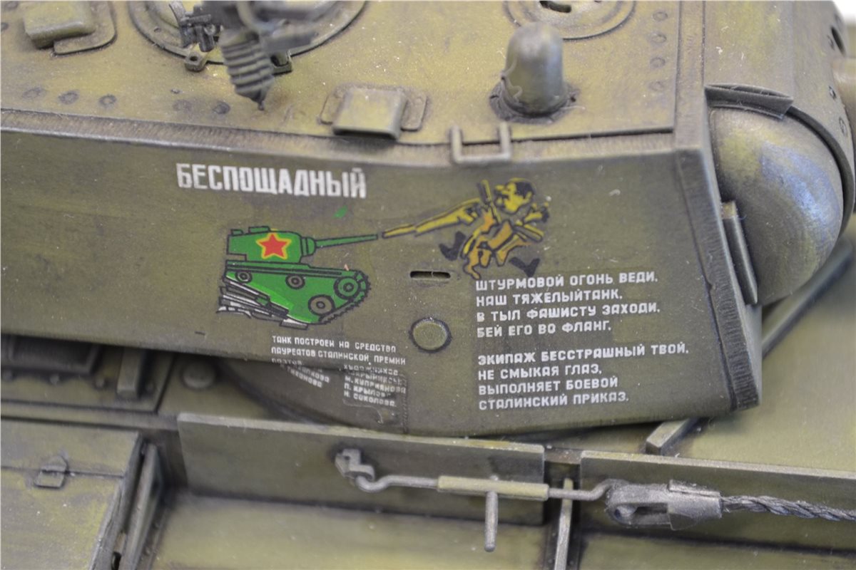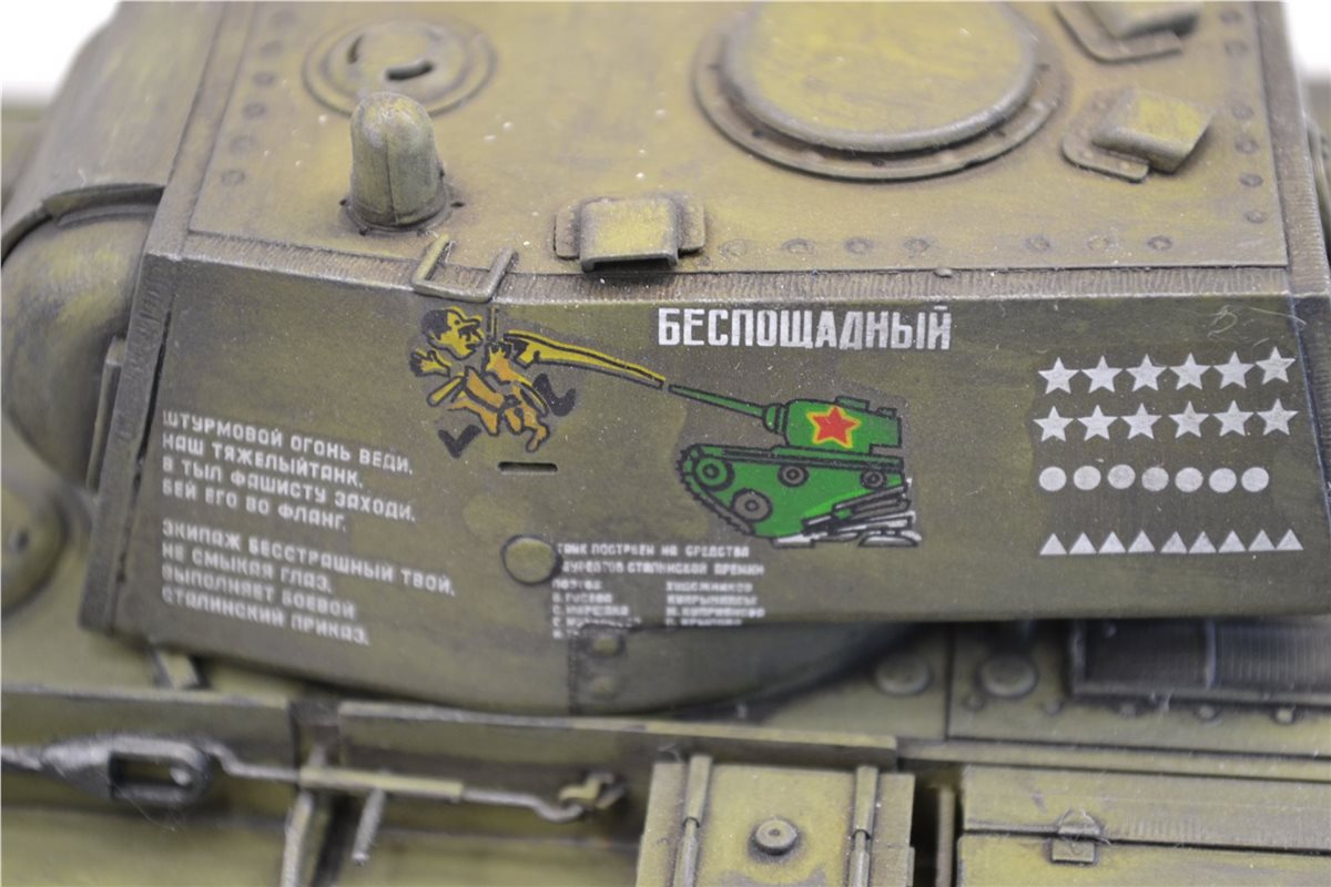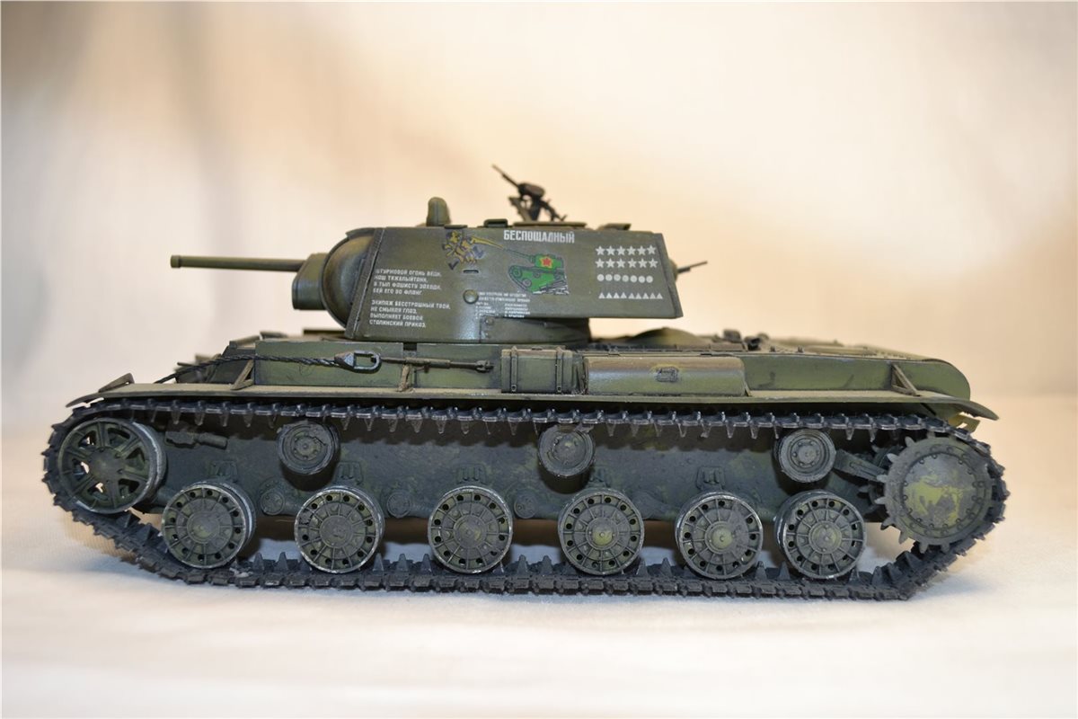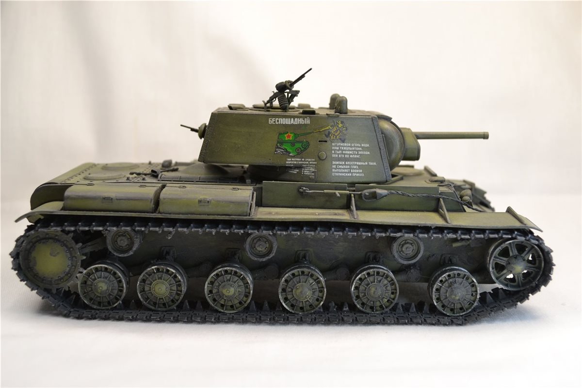 Советский тяжелый танк КВ-1 "Беспощадный" построенный на личные сбережения советских работников искусств - лауреатов Сталинской премии. Гвардейская танковая бригада полковника М. Скубы. Западный фронт, осень 1942 г. Модель фирмы "Звезда", выполнена из пластика, окрашена красками фирмы "Tamiya".