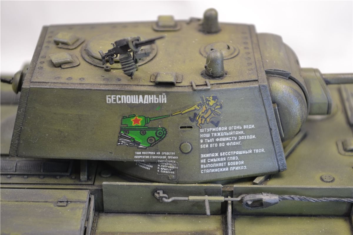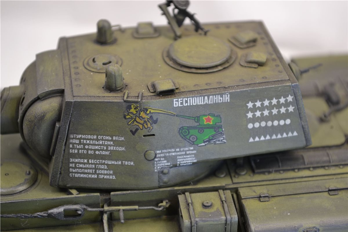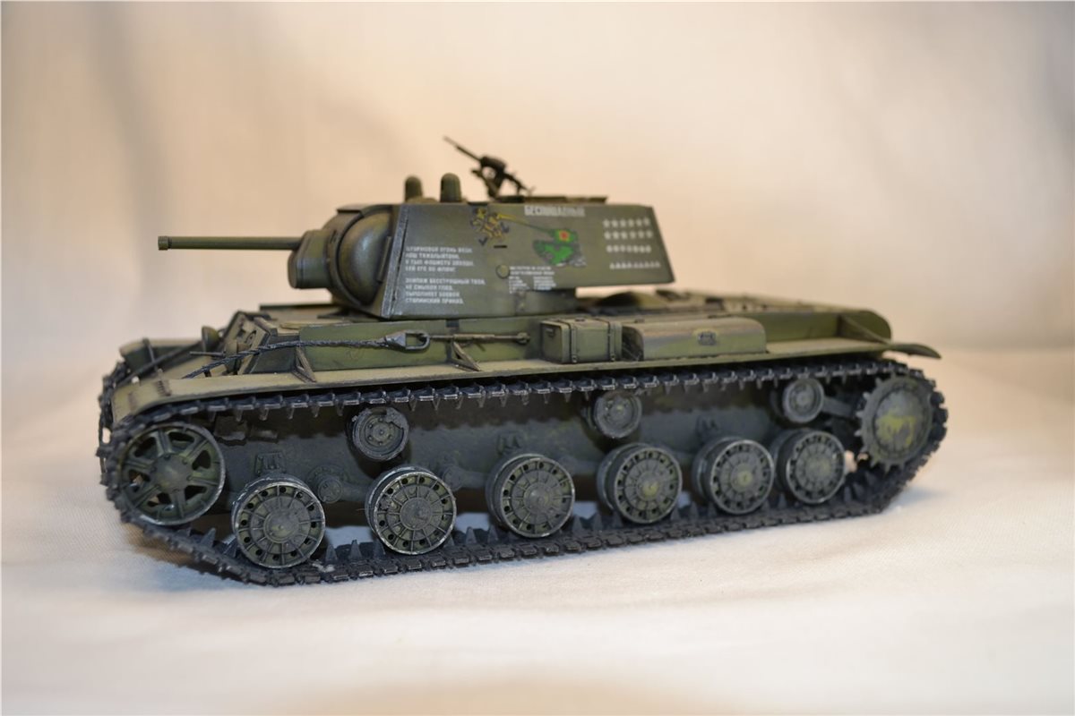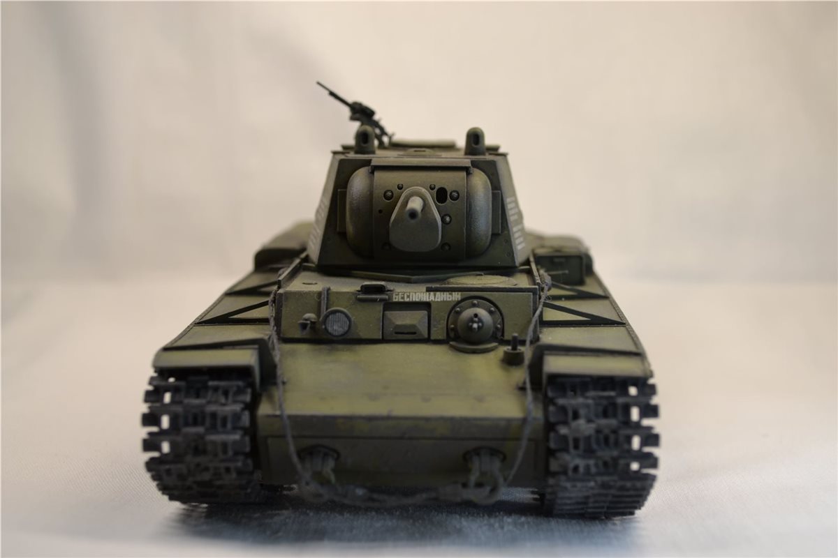 Советский тяжелый танк КВ-1 "Беспощадный" построенный на личные сбережения советских работников искусств - лауреатов Сталинской премии. Гвардейская танковая бригада полковника М. Скубы. Западный фронт, осень 1942 г. Модель фирмы "Звезда", выполнена из пластика, окрашена красками фирмы "Tamiya".
