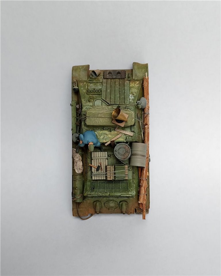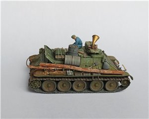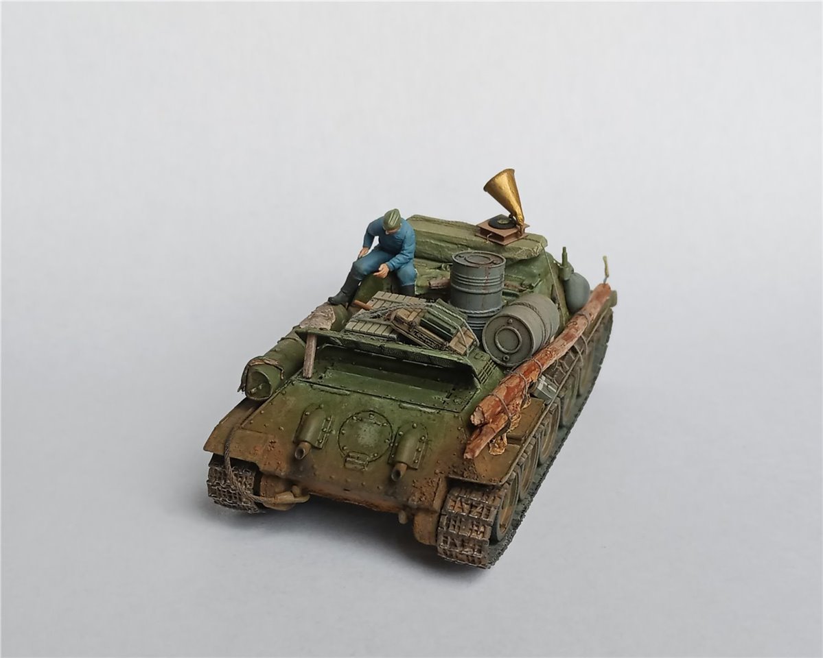 Задумка: одна из последних машин колонны "Советский старатель", работающая в роли тягача. Машина, пережившая не один ремонт. Гусеничные ленты собраны из траков разных типов. Датировка: апрель-май 45го.