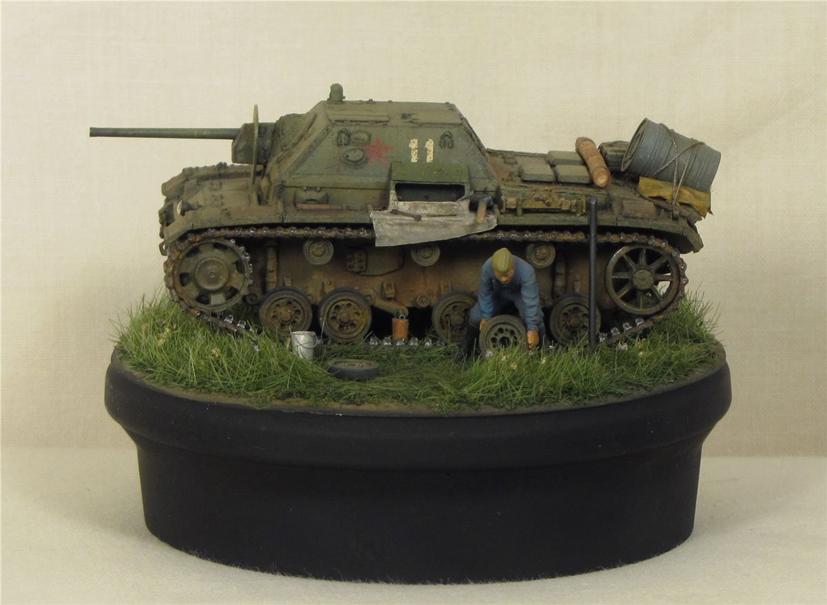 В Красной армии воевало около 200 таких машин, построенных на базе трофейных Pz.3. Попытался показать один из эпизодов обслуживания данного вида техники.